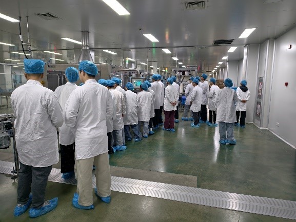 同学们实地参观了单剂量滴眼剂GMP生产车间,观摩了玻璃酸钠滴眼液从“吹瓶-灌装-封口”的全自动生产线到严谨的质检包装流程。在企业展厅与眼健康科普馆,同学们了解了企业的发展历程、科研创新成果与党建文化。在专题交流会上,企业方介绍了其质量管理体系与产品工艺,并就同学们的职业发展困惑进行了现场解答。