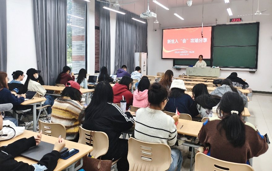 近日,外国语学院日语系举办“企业导师进课堂”暨优秀校友返校交流活动,邀请日语系2022届优秀毕业生、现任职于上海某知名电商运营公司的刘学清校友重返母校,为在校生带来了一场题为“新生入‘会’攻略:从校园到职场的华丽转身” 的讲座。活动现场气氛热烈。
