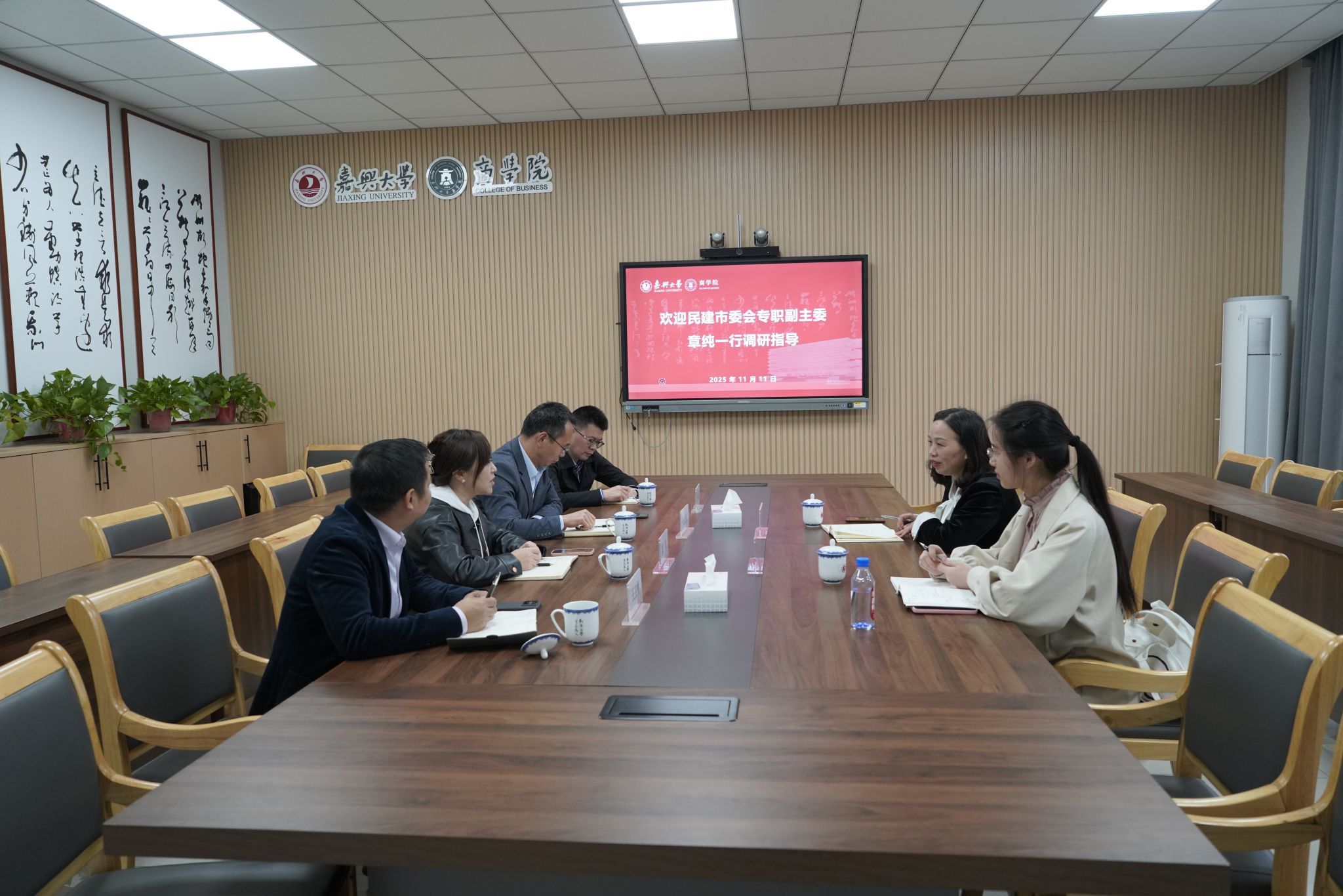 11月10日下午,民建嘉兴市委会专职副主委章纯到商学院调研。商学院党委书记虞岚,党委统战委员、副院长冯磊东等接待调研并交流。