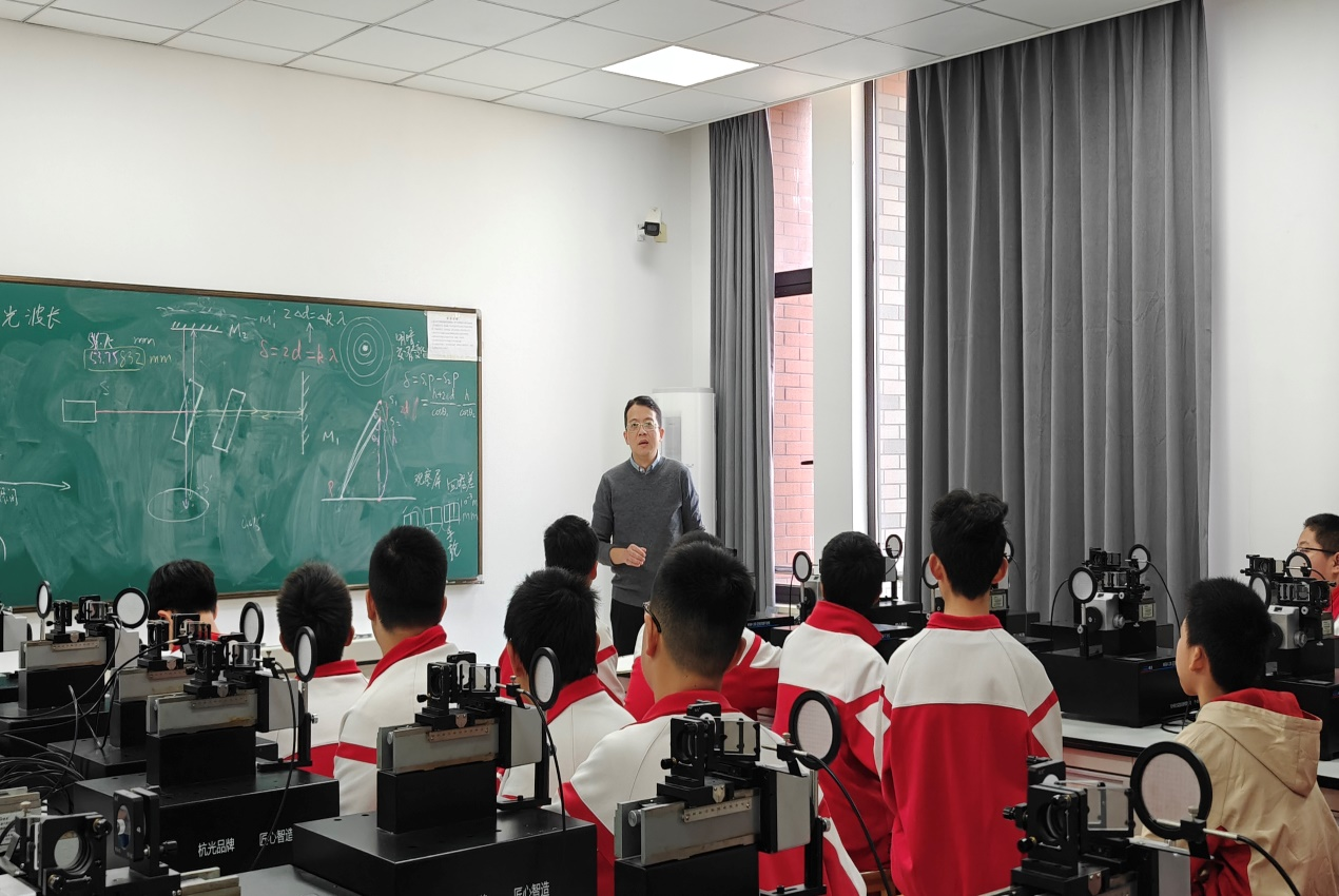 物理教研部的老师们还分组给同学们介绍和演示了拉伸法测弹性模量、气体比热容比的测量、霍尔效应等实验的原理和操作流程,并解答学生提出的诸多物理问题。活动受到师生的一致好评。
