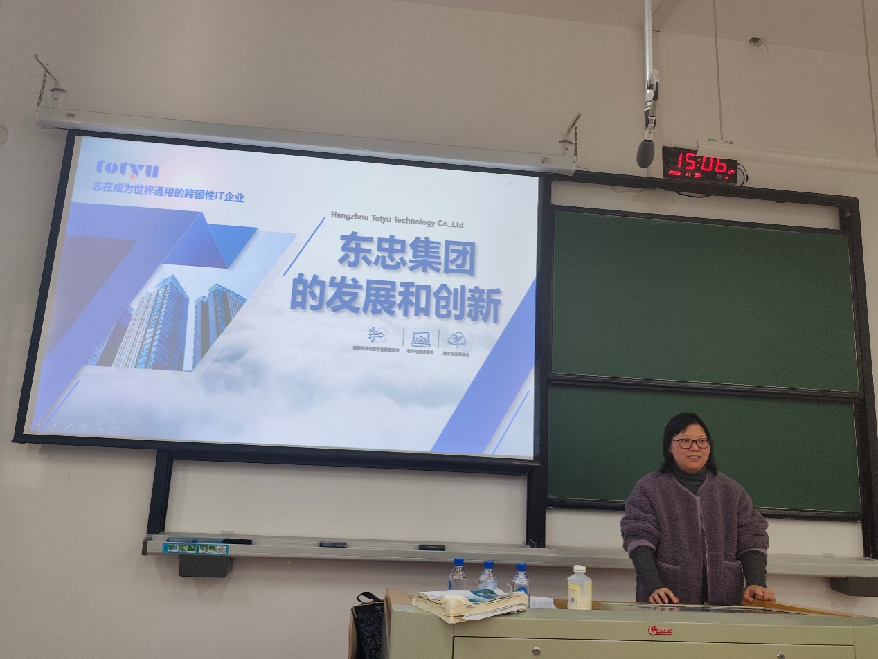 随后,鲍巧玲详细介绍了东忠集团的发展历程与业务版图。作为深耕中日IT市场数十年的标杆企业,东忠集团不仅搭建起连接两国数字产业的“桥梁”,更在软件开发、系统集成、数据服务等领域积累了深厚实力。企业的行业地位与发展前景,让同学们对“日语+IT”人才的就业平台有了更直观的感受,也进一步激发了跨界学习的积极性。