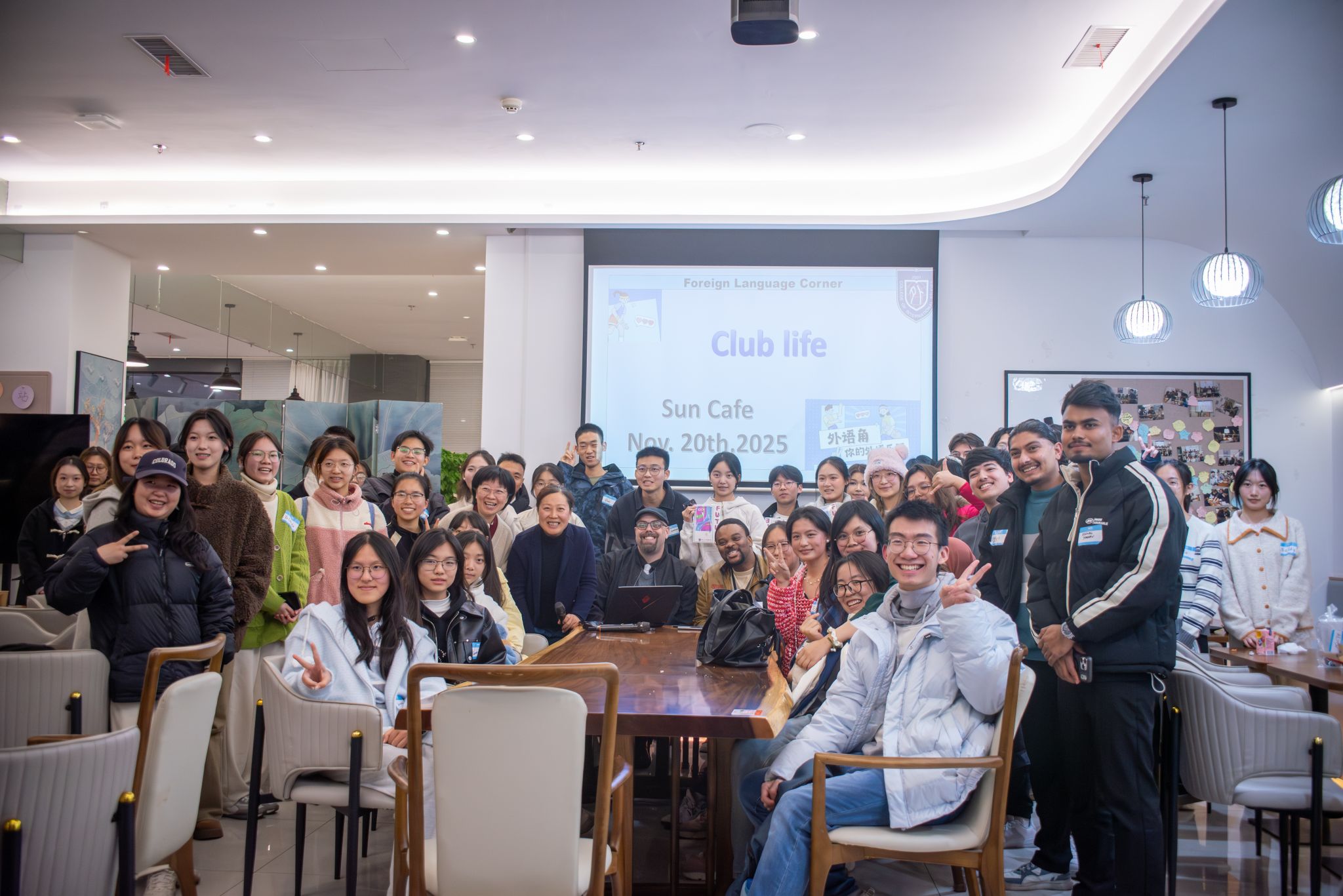 11月20日晚,由外国语学院主办、尚书吧协办的“社团万象”主题外语角活动在图书馆二楼举行。活动以英语为桥梁,畅谈社团生活的酸甜苦辣,分享成长收获,在跨文化交流中拓展视野。