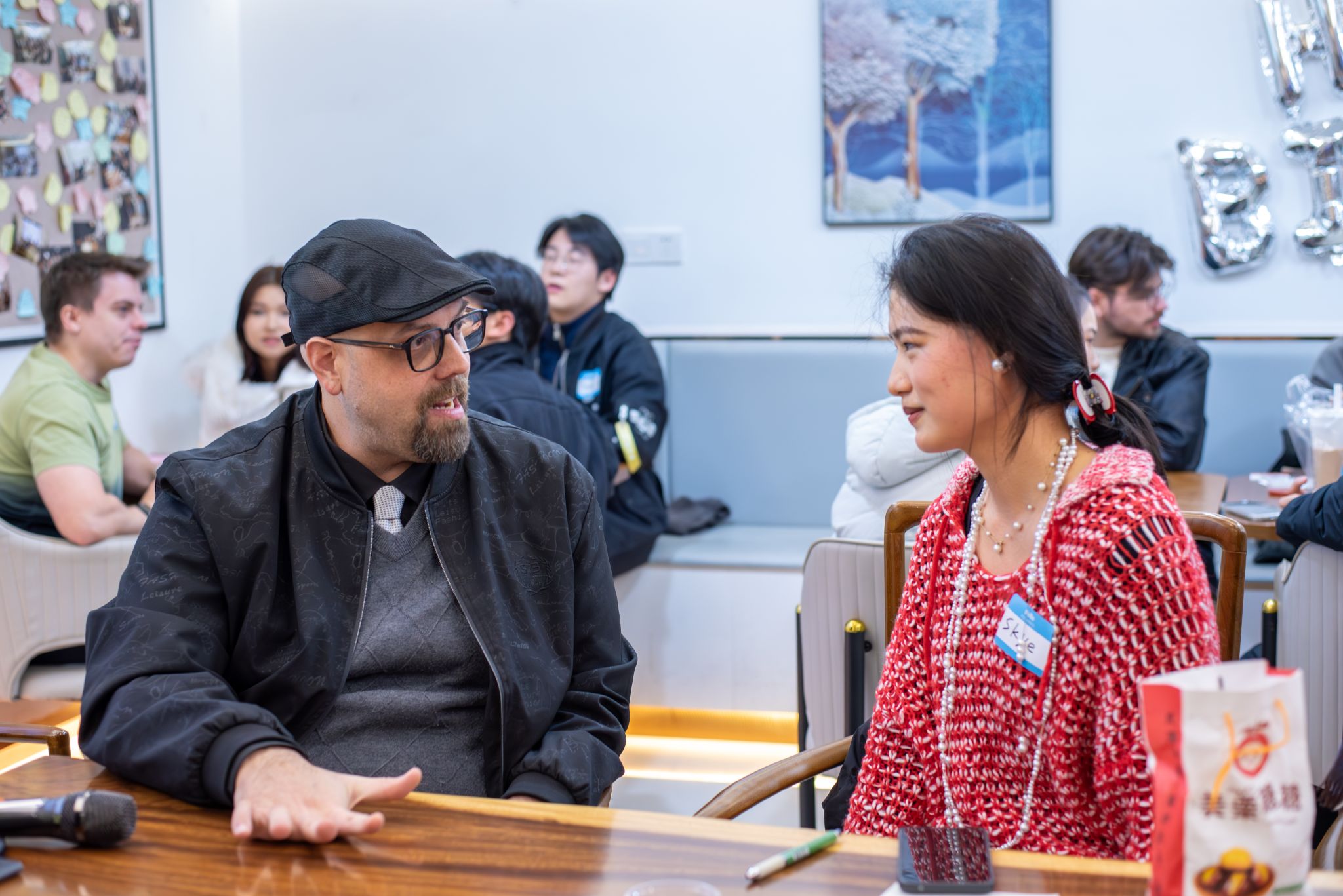 外教Nathan则围绕交友、社团活动与时间管理设置了三个问题,引导现场讨论。他分享了自己创办“午夜观星俱乐部”或“猫咖学习社”的设想,启发了学生的创社思路,现场提出了“自由解放社”“麻将社”等多种创意构想。