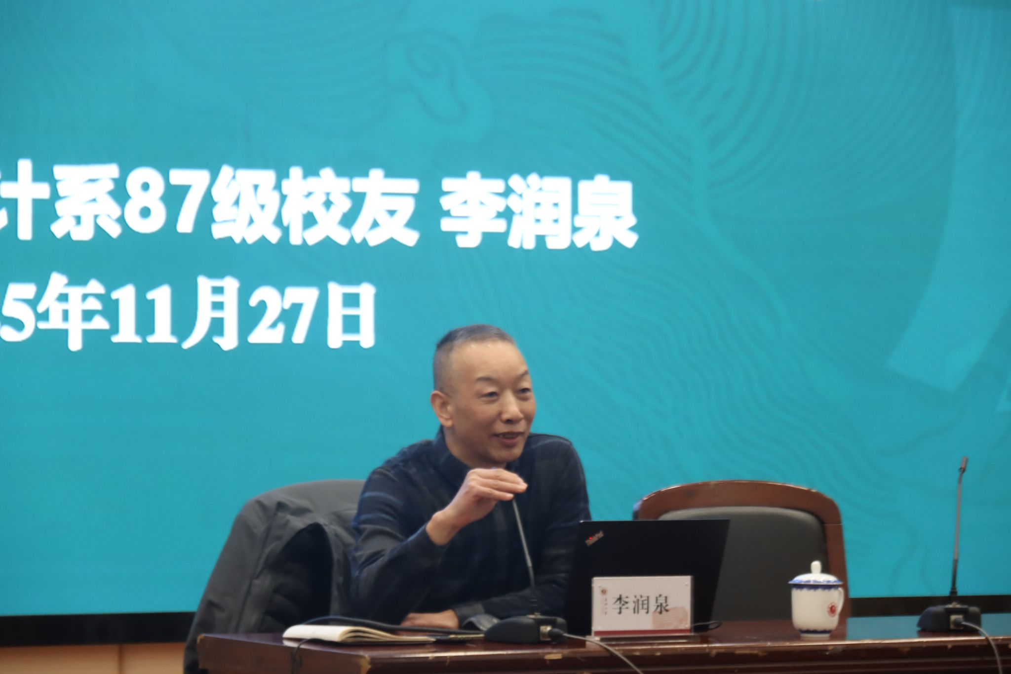 李润泉以清晰的逻辑架构和深厚的专业积淀,从“什么是漫画”“中国漫画大师及其代表作”“嘉兴是中国漫画的文化重镇”“我的漫画创作之路”“漫画创意与欣赏”五大维度,系统阐述了漫画艺术的魅力与价值;他结合自身三十余年的双重深耕经历,讲述了从会计专业学子成长为资深审计人员和漫画家的成长故事,勉励同学们坚守热爱、持续深耕;李润泉还结合审计工作与漫画创作的共通之处——严谨细致的态度、独特的观察视角、深刻的问题洞察,启发学子们在专业学习与职业实践中融入创意思维,实现跨界赋能。