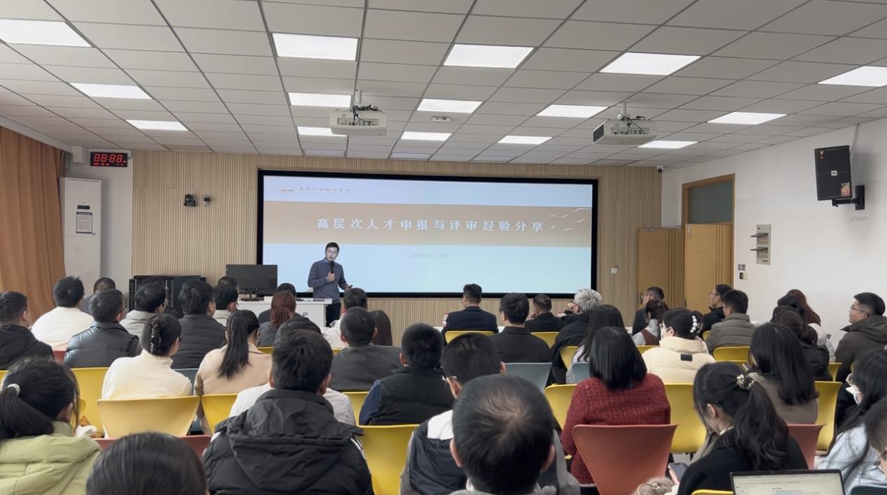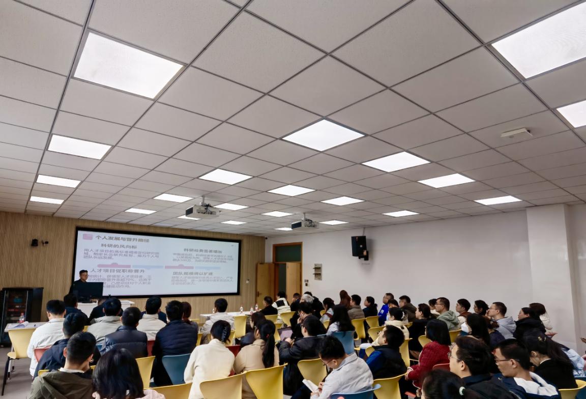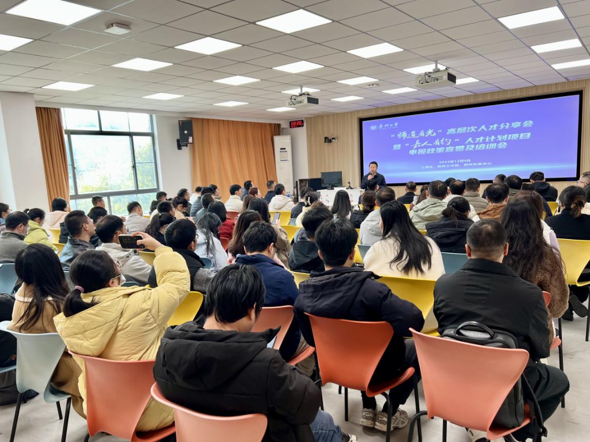 为深入贯彻落实学校“355”人才强校战略,精准对接人才培育关键环节,助力人才全面掌握各类人才计划申报政策要点与成长路径,12月4日下午,人事处、教师工作部、教师发展中心联合举办2025年“师道有光”高层次人才分享会暨“嘉人有约”人才计划项目申报政策宣贯及培训会,特邀高层次人才文雁兵教授、郭隆华教授作分享交流报告。活动由人事处副处长(主持工作)钟伟主持,各学院中青年优秀人才、负责申报工作的人才工作专员等90余人参加活动。
