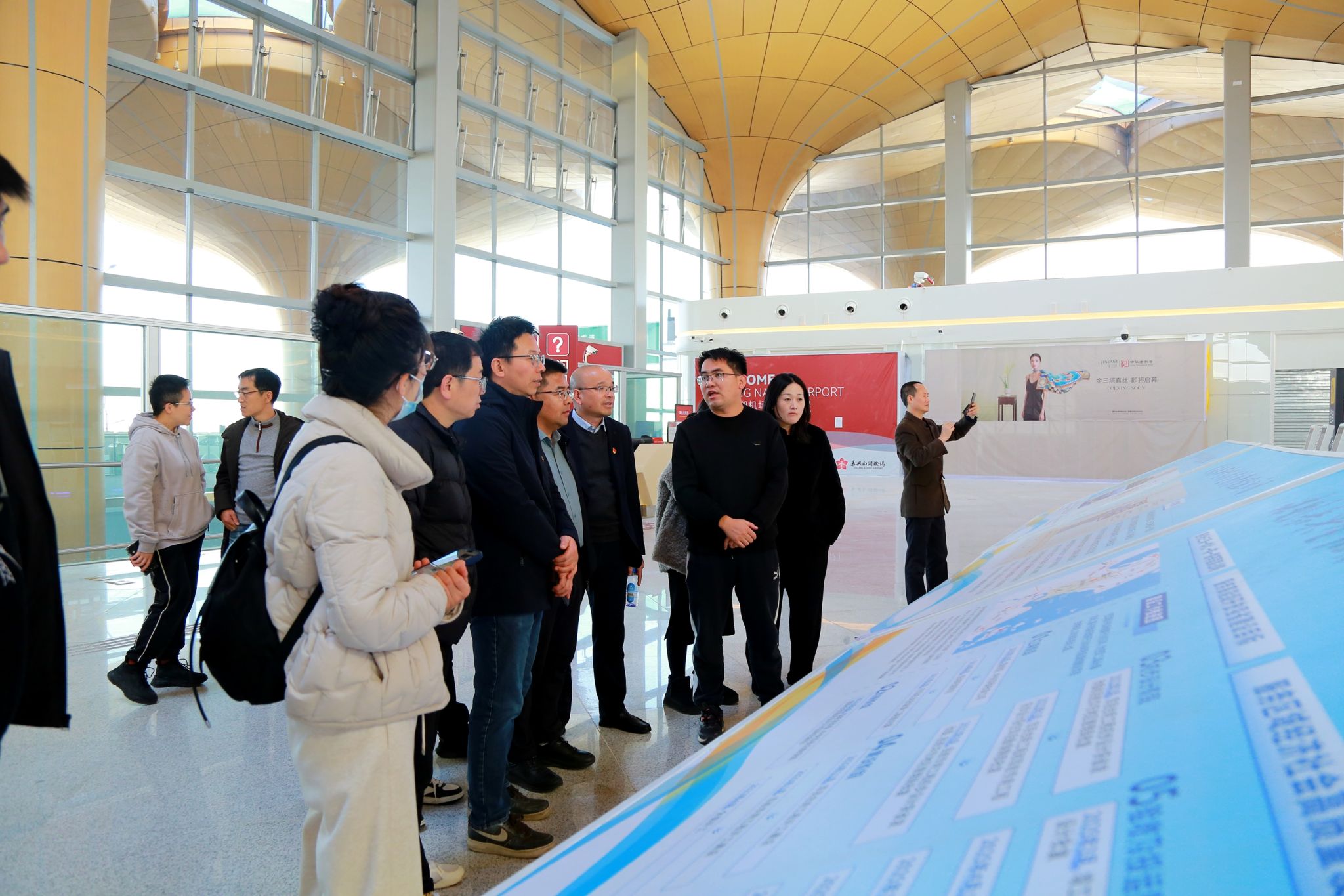 在嘉兴南湖机场,党员们参观了航站楼主体楼建筑、安检通道、候机大厅等场所,对机场作为长三角一体化战略支点的区位优势有了更深刻的认识。