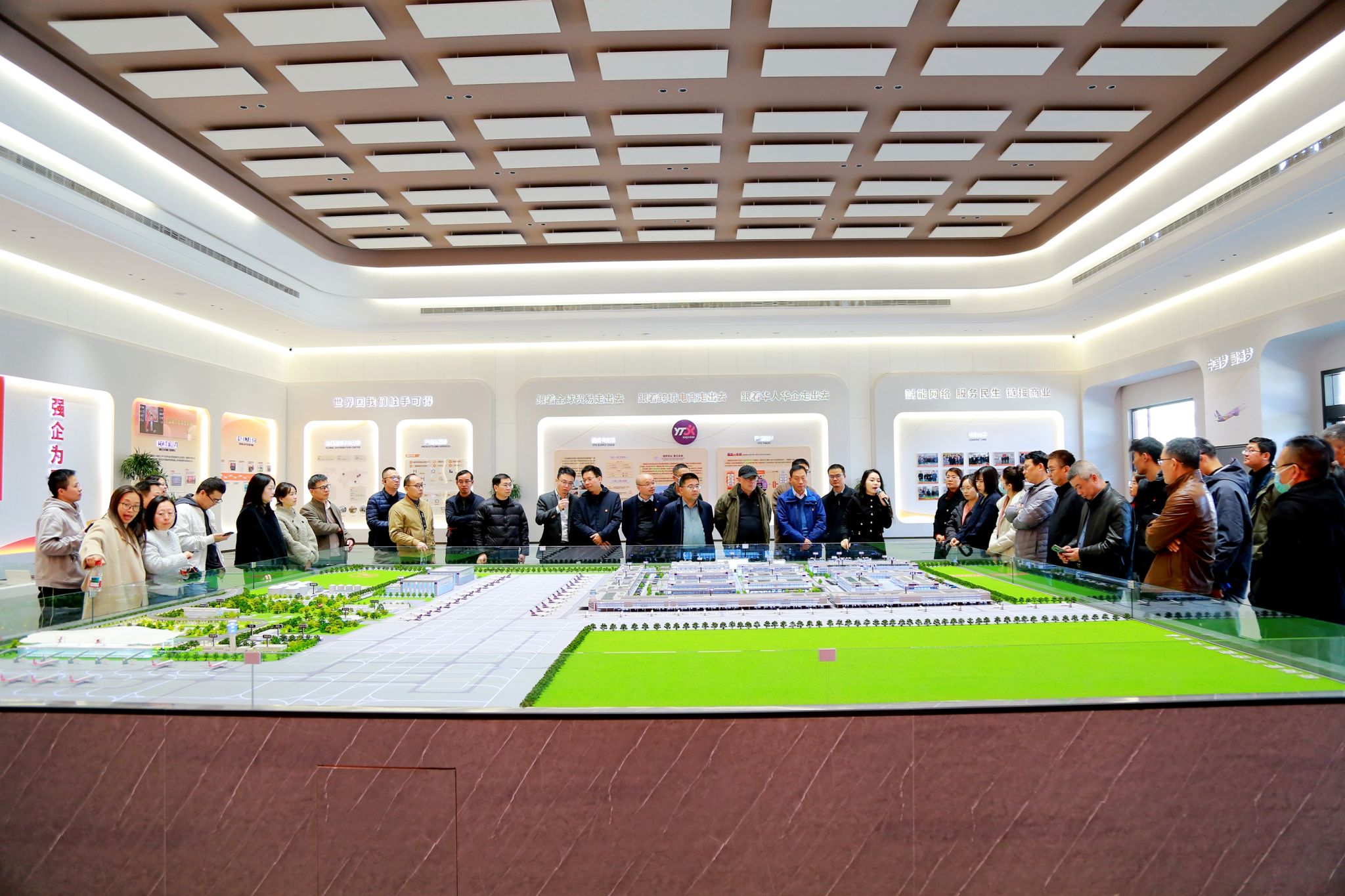 在圆通“东方天地港”项目现场,党员们重点参观了圆通物流园、进口商品交易区以及货物进口和出港海关节点。据现场负责人介绍,目前东方天地港正处于施工收尾与设备调试的关键阶段,多个单体建筑已进入最后冲刺期。