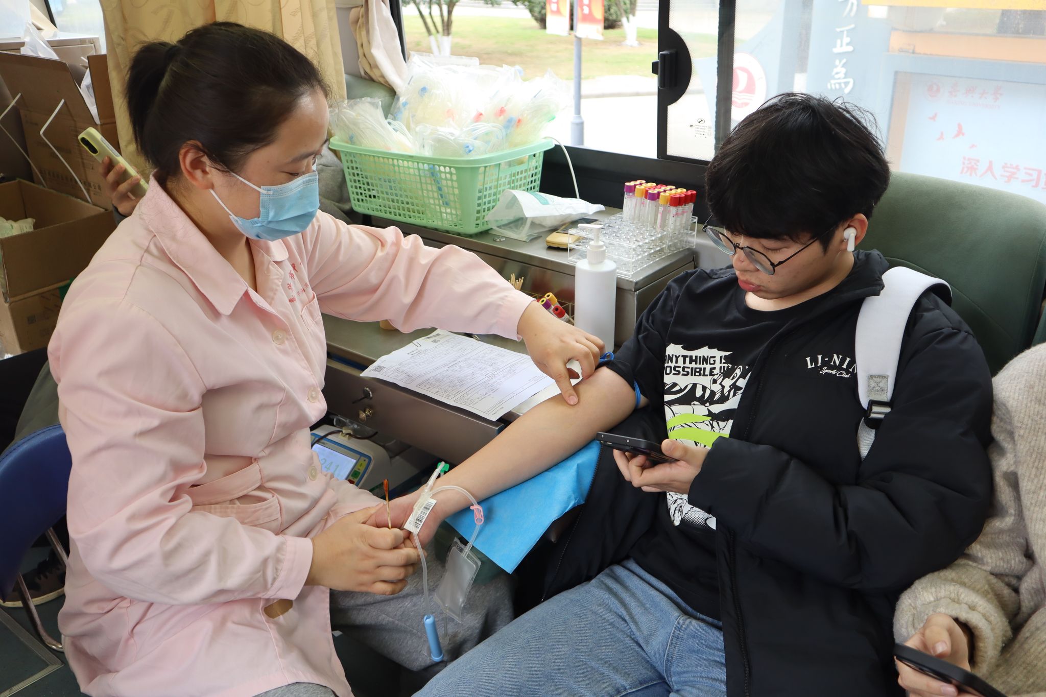 12月10日,平湖师范学院、教育学院联合平湖市血站于食堂门前开展无偿献血公益活动,学院共有一百余名师生报名参与,最终103人成功献血,为冬日校园绘就一幅温暖的奉献画卷。
