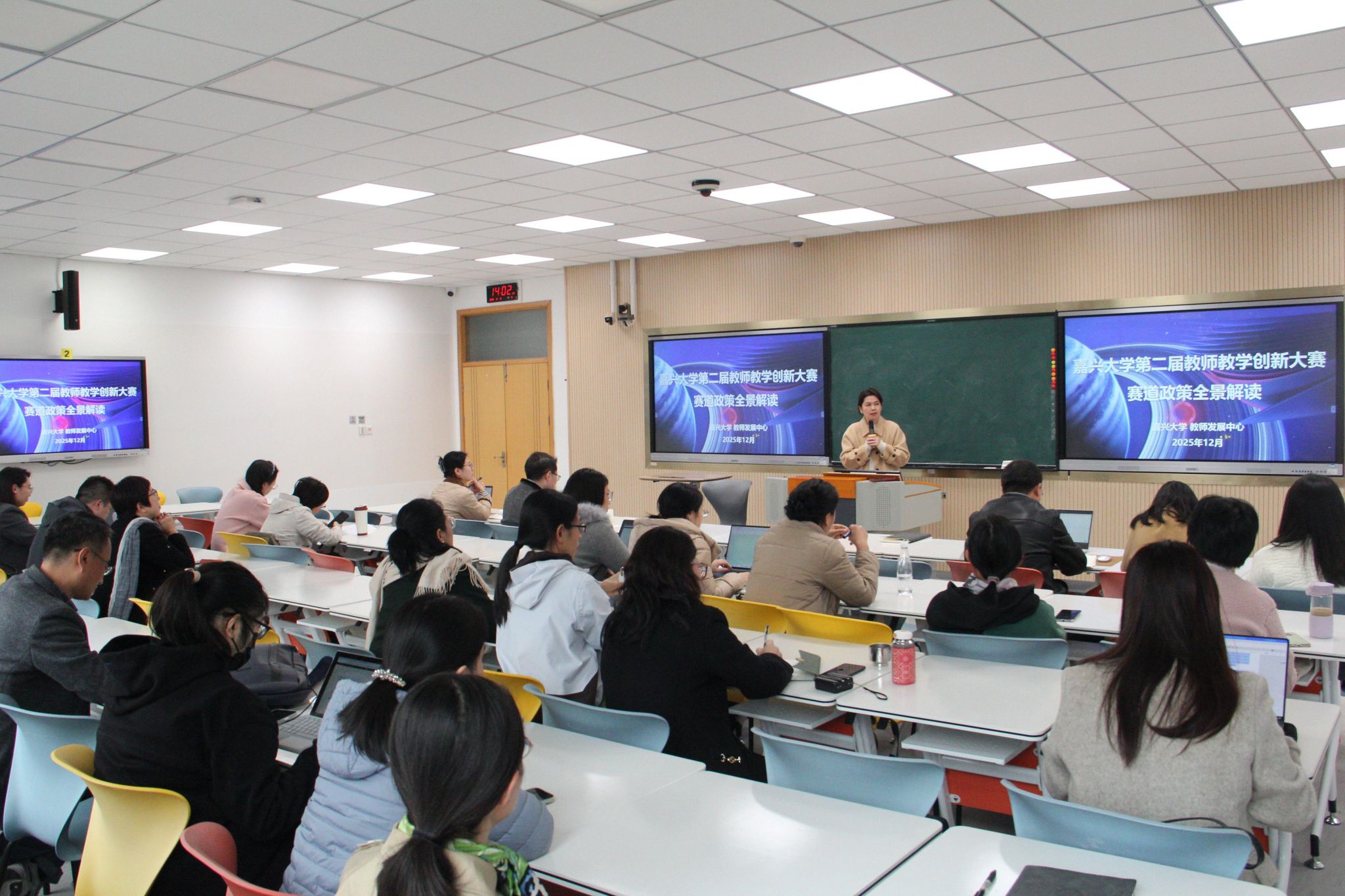 12月12日下午,教师发展中心在梁林校区兴礼楼209智慧教室举办“第二届教师教学创新竞赛备赛指导分享会”,来自各学院的40余位参赛教师及团队成员参与了本次活动。