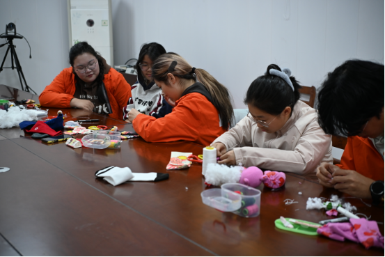 活动现场,志愿者们提前准备了色彩各异的袜子、填充棉、纽扣、毛线等材料,通过“袜偶小剧场”情景导入,向孩子们展示袜子变身“小兔子”“独角兽”“太空人”的奇妙过程。在志愿者的指导下,孩子们发挥想象,将普通袜子改造成形态各异的萌趣玩偶:有的缝上蝴蝶结,有的画上表情,有的还用毛根制作出能活动的四肢。