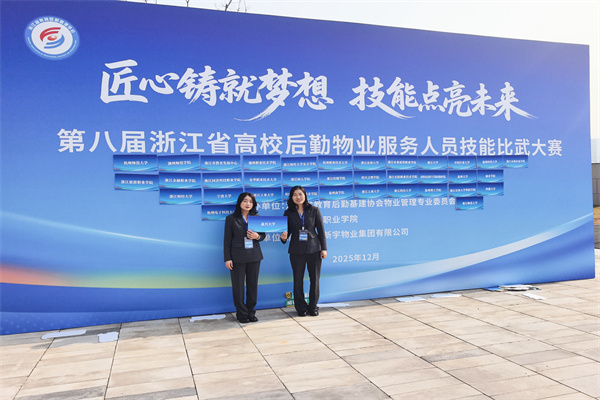 12月10日至11日,第八届浙江省高校后勤物业服务人员技能比武大赛在浙江金融职业技术学院绍兴校区举行。我校后勤服务有限公司物业服务部周小英、李苏婉获得团体铜奖、个人优胜奖。