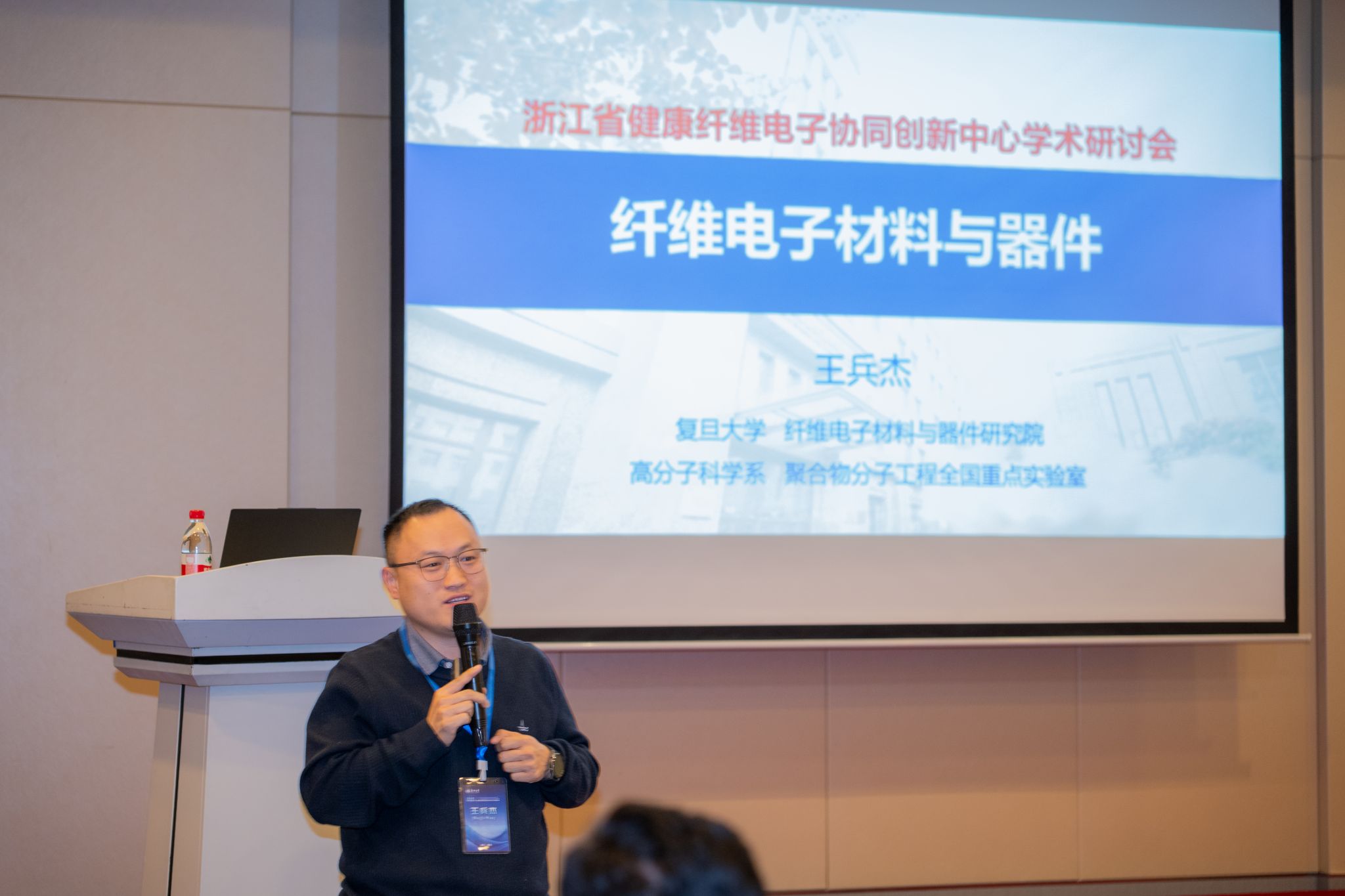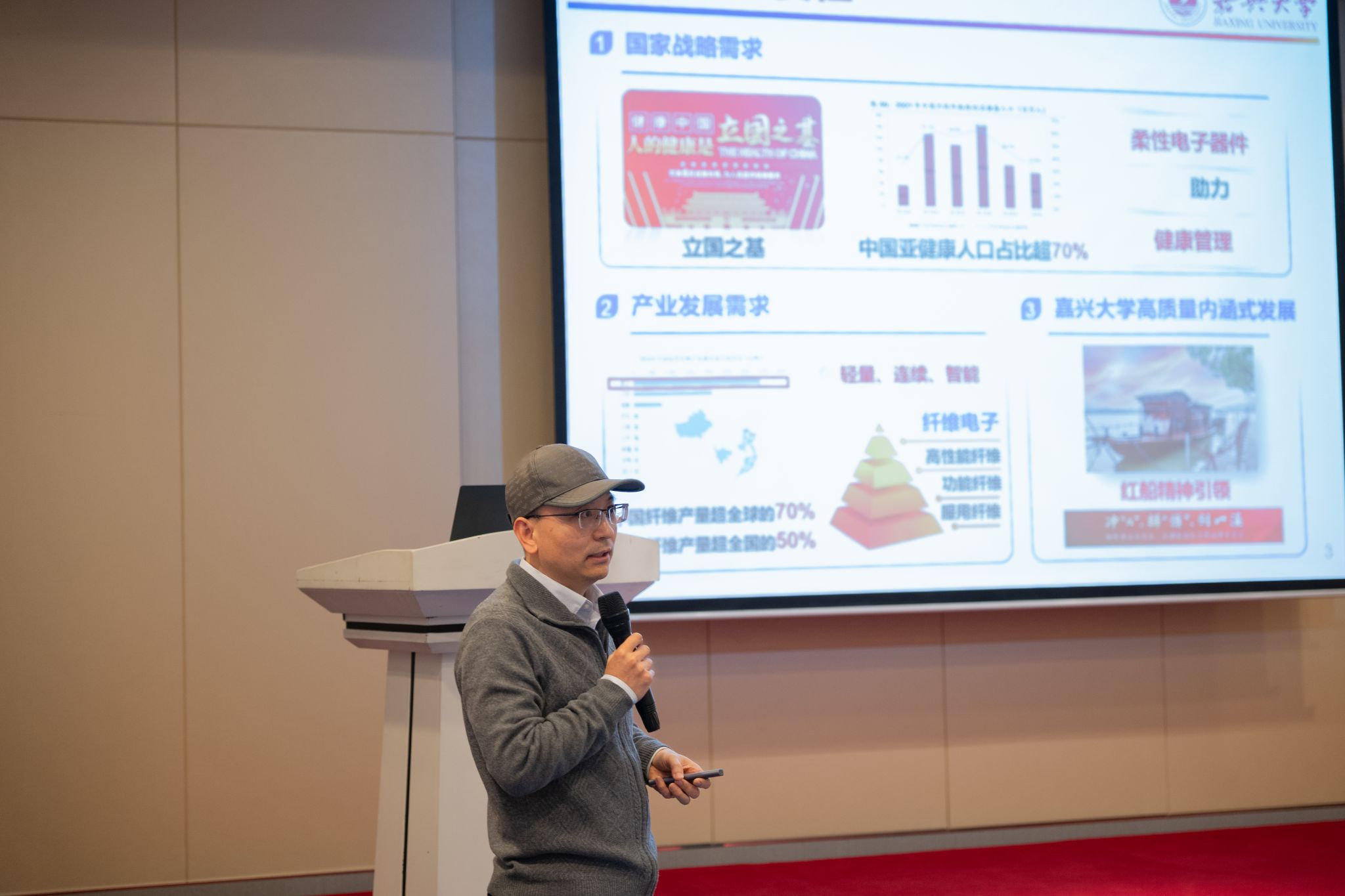 嘉兴大学科技处副处长沈小军为大会开幕致辞。沈小军对与会嘉宾表示欢迎,并表示学校对跨学科协同创新及产学研融合的高度重视,期待中心围绕“健康+纤维+电子”方向,在前沿技术攻关与成果转化上取得重要突破,为区域产业升级与人民健康服务提供支撑。