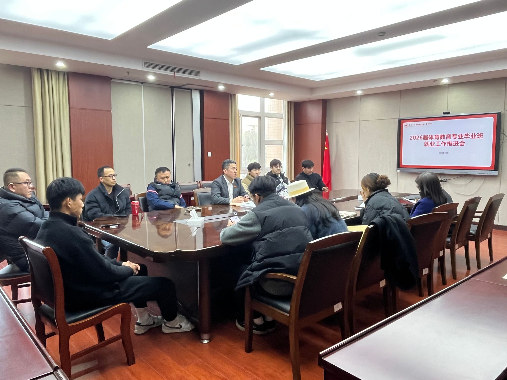 12月30日,平湖师范学院、教育学院组织召开2026届体育教育专业毕业班就业工作推进会。学院副院长(主持工作)朱小烽主持会议,体育系教师、各班班主任、学工办相关教师及学生代表共同参会。