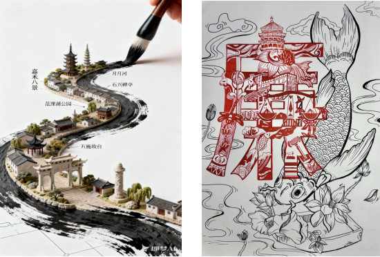 “艺术+思政”,筑牢实践育人根基。学院充分发挥中华优秀传统文化在立德树人中的重要作用,依托浙江省非物质文化遗产传承教学基地,深入挖掘嘉兴剪纸、竹编工艺、蓝印花布、海宁皮影、灶画艺术等本地非遗技艺中的育人元素,通过“技艺体验—文化认同—创作转化”的实践路径,实现美育与思政的双向赋能。学生在动手实践中感悟匠心,在艺术表达中厚植家国情怀,真正实现从“知道”到“体道”的跃迁。由师生共创的微视频《服饰非遗文化在嘉院》入选2023年高校“礼敬中华优秀传统文化”宣传教育活动优秀作品,并在光明网、央视网展播;学生参与制作的《青春红船领航青年挺膺担当》实践资源成功入选教育部《2025“大思政课”手绘地图》。学院持续打造AI嘉文化创作挑战赛、图说清廉书画大赛、反诈漫画创作、微视频创作大赛等品牌活动,将廉洁文化、法治意识、时代精神融入艺术表达,让思政教育“活”起来、“暖”起来,润物无声中彰显“崇德尚艺”的育人底色。