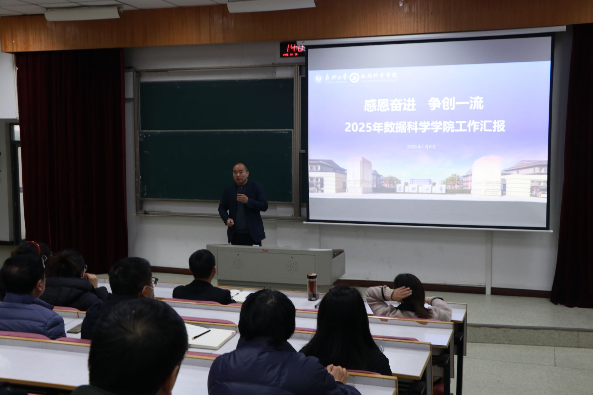 1月6日下午,数据科学学院在博闻楼报告厅召开2025—2026学年秋季学期期末教职工大会暨年度民主测评会。校党委组织部副部长庄美燕到会指导。会议由学院党委书记虞岚主持。