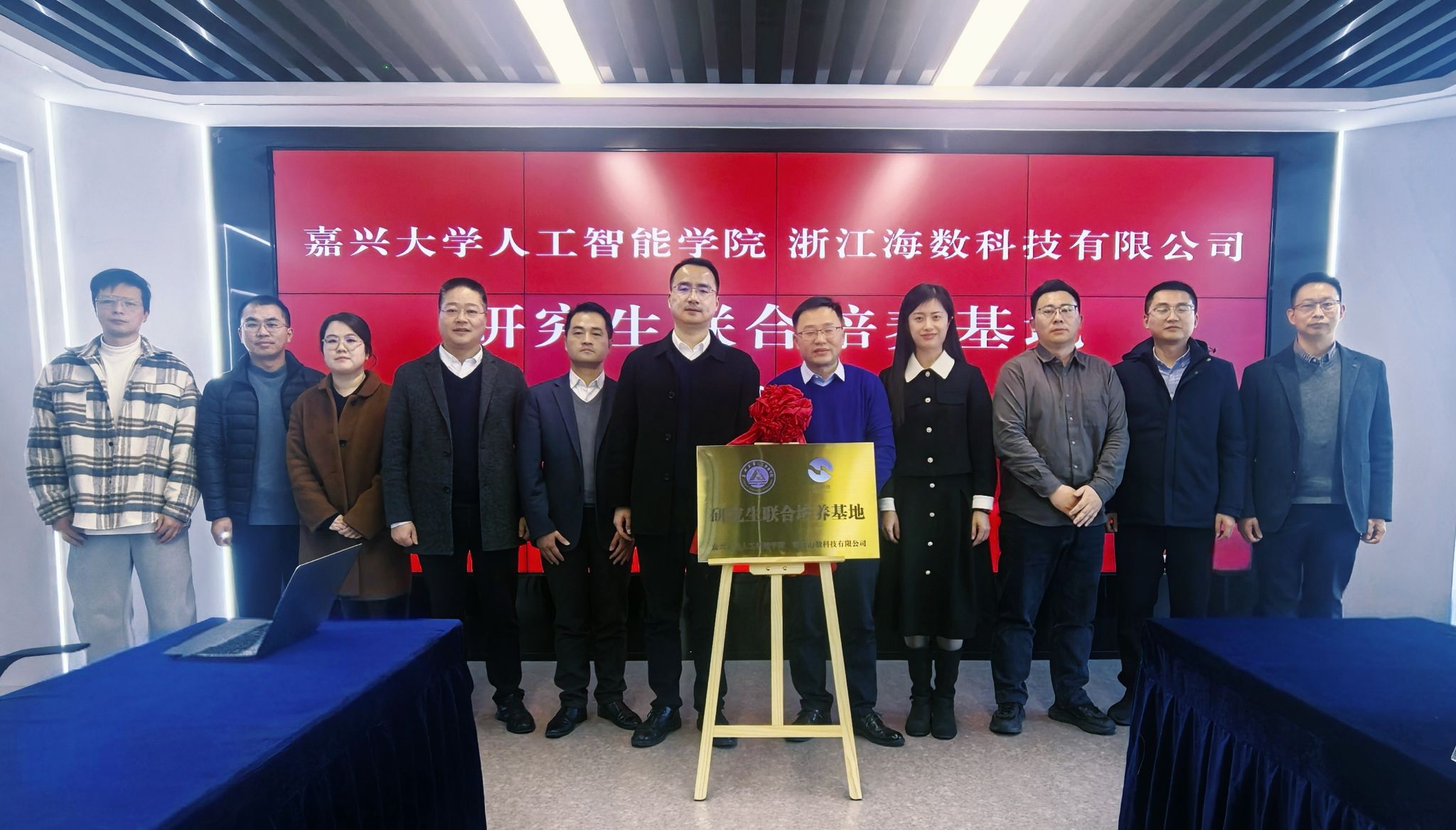 会上,双方签署党建共建、研究生联合培养基地、产学研合作协议书,并为“嘉兴大学人工智能学院——浙江海数科技有限公司研究生联合培养基地”揭牌。根据协议,双方将共建研究生联合培养基地,围绕真实产业课题开展项目制教学与科研实践;联合申报科研项目,开展关键技术攻关;并建立常态化交流机制,推动技术成果转移转化与应用推广。