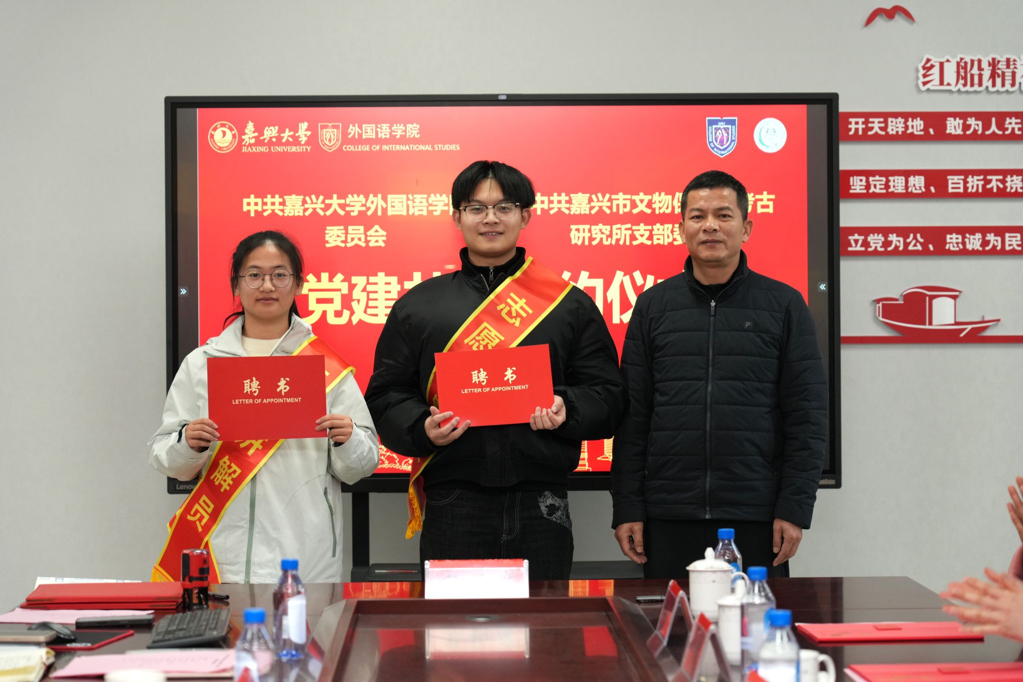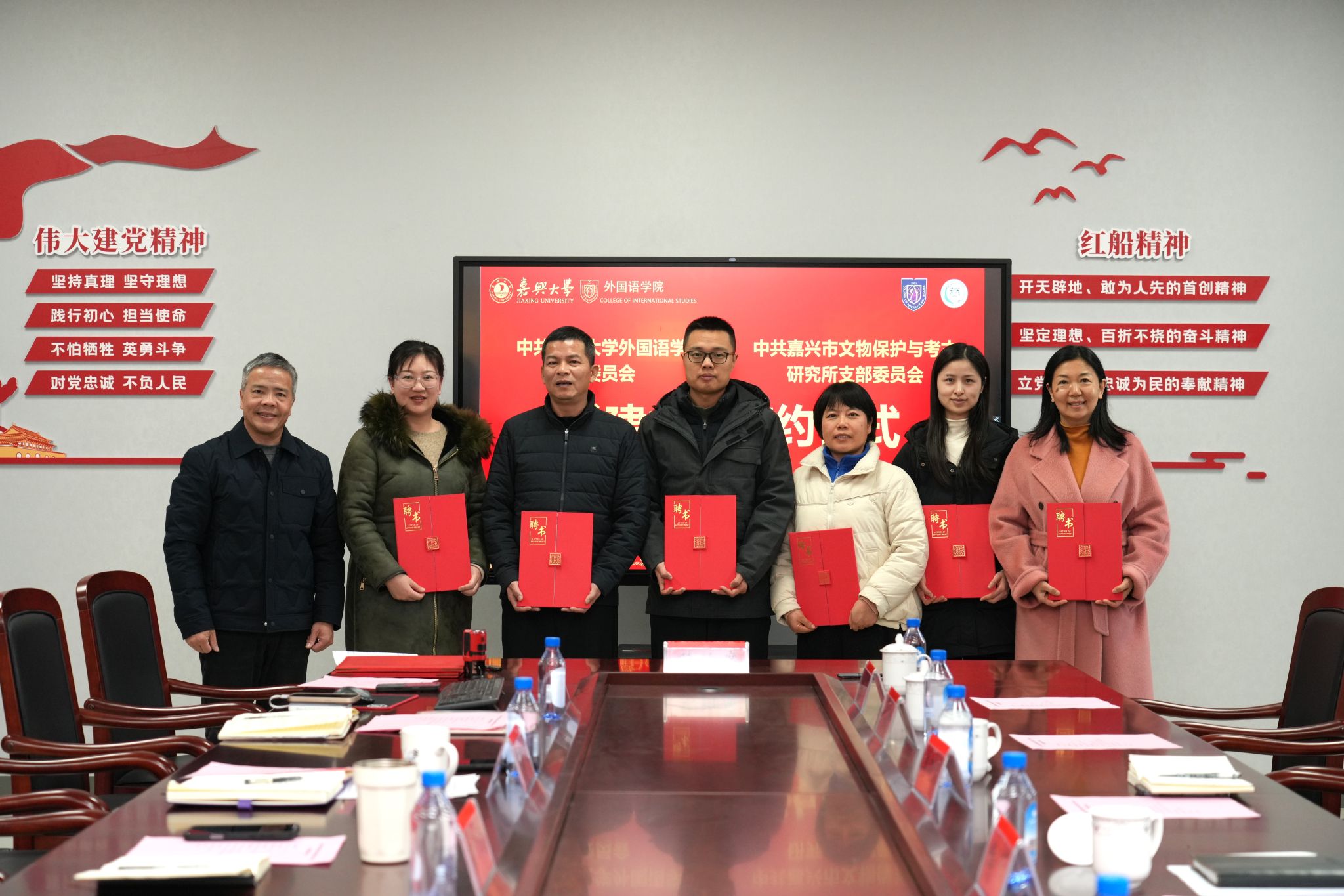 1月21日下午,外国语学院党委与嘉兴市文物保护与考古研究所党支部在兴德楼南楼516会议室举行党建共建签约仪式。学院院长唐艳芳、党委书记刘巧芝,嘉兴市文物保护与考古研究所所长张青出席签约。仪式由学院党委副书记张啸峰主持,学院师生代表和相关人员参加仪式。