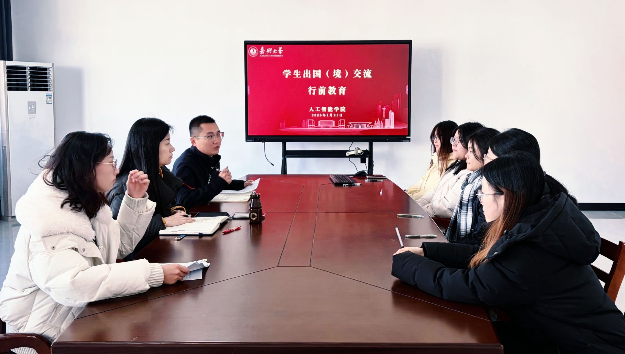 1月21日上午,人工智能学院在博闻楼520会议室召开2026年寒假学生出国研学行前教育会。会议聚焦海外安全、跨文化适应、学习规划与爱国荣校等内容,旨在为学生提供系统指导与全面支持。会议由学院党委副书记唐永主持,学院党委书记周钰出席会议并讲话。