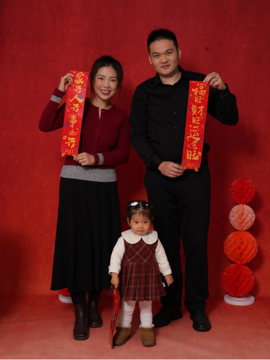 活动现场,每个家庭都在预约时段准时到场。大家换上风格统一的服装,或依偎相拥、或笑眼弯弯,不少家庭还自带了充满年味的妆造道具,让画面更具纪念意义。快门声与欢笑声交织,每一张照片都承载着教职工家庭的幸福与校园的温暖。