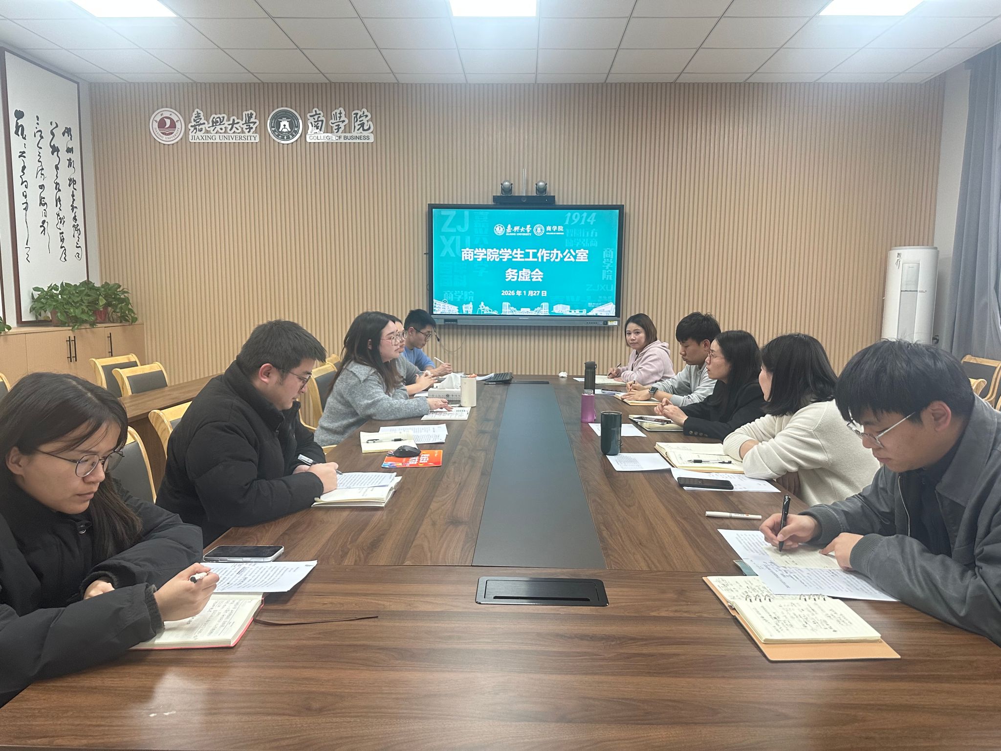 1月27日下午,商学院在尚德楼345会议室召开学生工作务虚会,总结复盘2025年工作,研究谋划新一年工作思路、重点任务。学院党委书记任玉萍、副书记潘欣和全体辅导员参加会议。