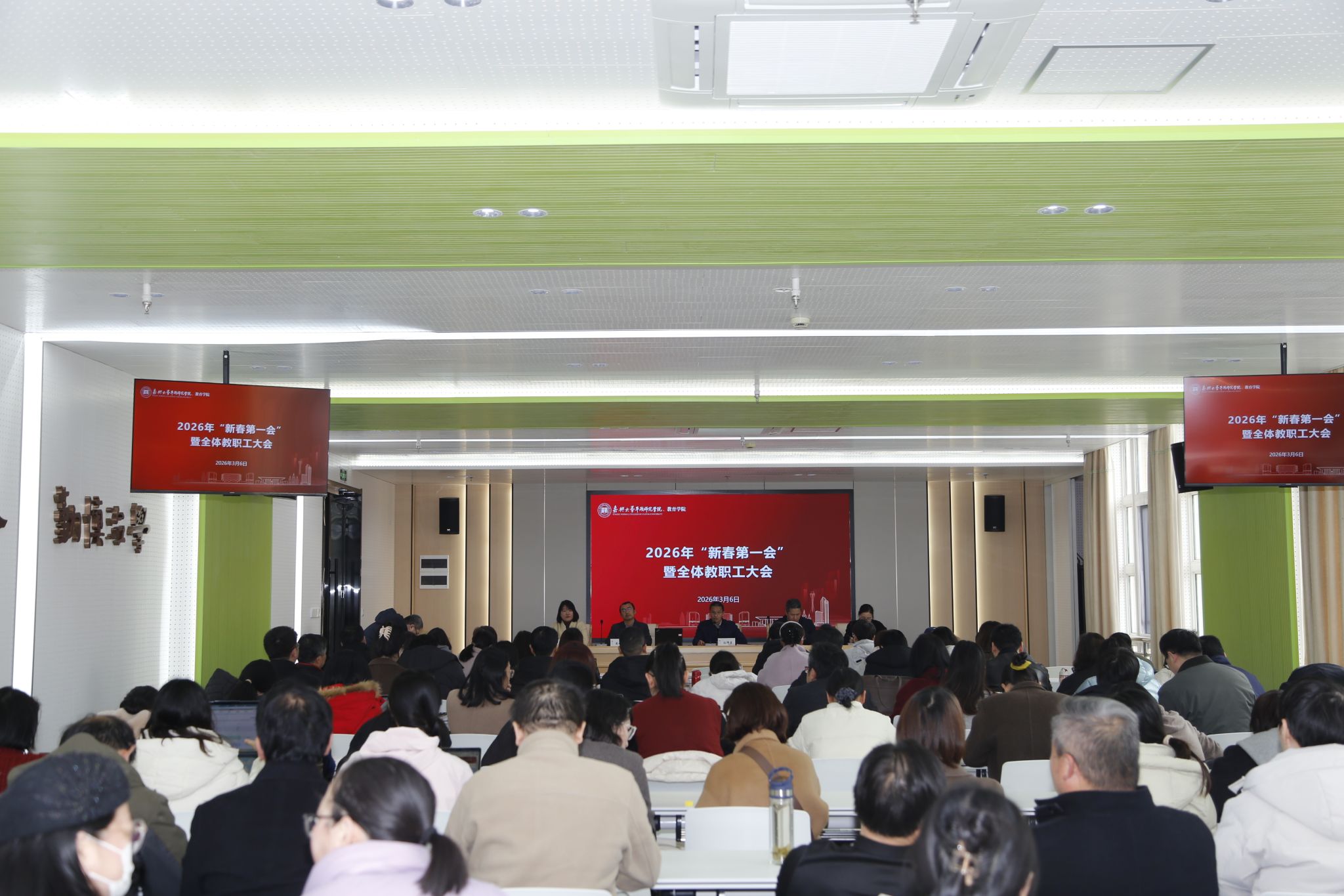 学院副院长(主持工作)朱小烽简要回顾了“十四五”期间学院在党建、学科建设、专业建设、人才培养等方面取得的成效,并对2026年学院发展任务指标进行了系统解读。他希望全体教职工凝聚共识、实干担当,在马年以更加务实的作风、更加昂扬的姿态,快马加鞭推进各项工作,以龙马精神跑出加速度、干出新业绩,奋力推动学院高质量发展开创新局面、谱写新篇章。