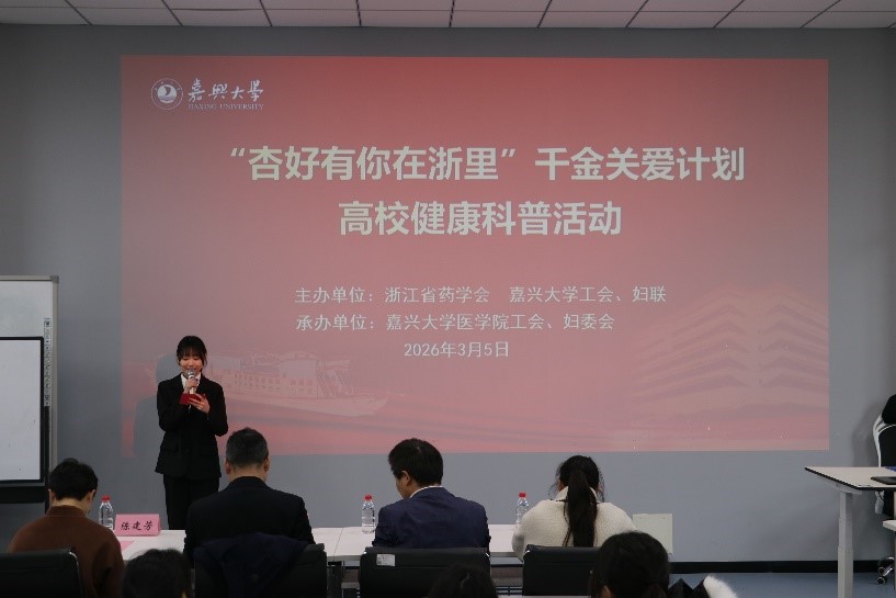 为迎接“三八”国际妇女节,3月5日下午,由浙江省药学会与嘉兴大学工会、妇联联合主办,医学院承办的“杏好有你在浙里”千金关爱计划高校健康科普活动在仁心楼举行。活动吸引了80余名女学生与10余名女教师热情参与。