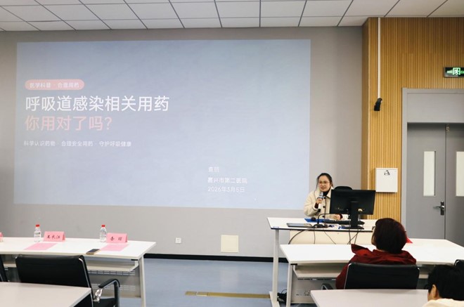 随后,两位专家分别带来精彩讲座。秀洲妇幼保健院副院长陈建芳以《女性常见疾病——月经不调》为题,系统讲解了月经周期的生理机制、常见问题的识别与应对策略,以及日常调理方法。她用通俗易懂的语言,帮助在场女生建立对这一“熟悉又陌生”话题的科学认知。嘉兴大学附属第二医院主管药师查丽则以《呼吸道感染相关用药,你用对了吗?》为题,从日常用药误区切入,深入浅出地讲解了感冒发烧等常见病症的用药原则、注意事项及药品说明书的正确阅读方法。