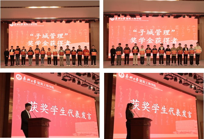 杨智慧宣读“子城管理”“子城联合”奖助学金获奖名单,企业嘉宾为获奖学生颁奖。两位获奖学生代表分享了他们在专业学习、实践探索中的成长故事与心得体会。