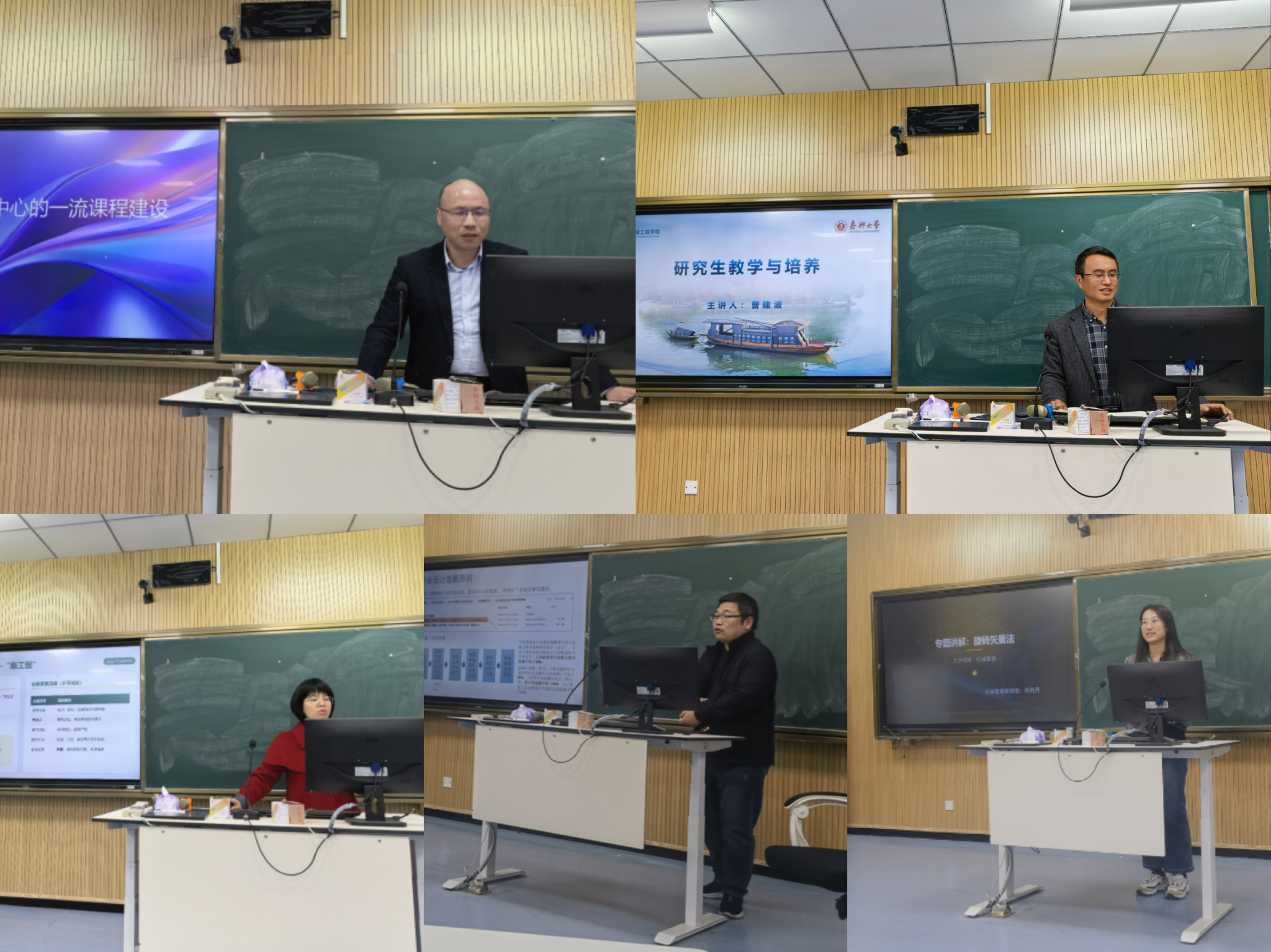 “我心目中的好老师”代表傅文珍副教授围绕教学文档规范、课堂教学设计要点展开分享,结合督导工作中发现的常见问题,明确教案、课件等教学文件规范及试卷批阅标准,并进行重难点拆解、搭建智能体等实操技巧;优秀论文指导教师代表朱荷蕾老师聚焦本科毕业设计与毕业实习指导,从选题原则、关键节点把控、学生常见问题应对等方面,梳理全流程规范要求;国家一流课程负责人曹坚教授结合自身多年的教学经验,指出要以学生为中心建设国一流课程,以《液压与气压传动》课程为例,从课前、课中、课后三个维度分享教学实施过程和一流课程建设重点;系主任曹建波教授重点分析研究生课堂教学,讲解本科与研究生培养目标的差异,从教学内容、教学方法、课程学习考评方法等多个维度深入剖析本研课程教学差异。此后,新进教师代表大学物理教研部肖利丹老师进行了课堂教学示范,展现了青年教师的教学风采和使命担当。