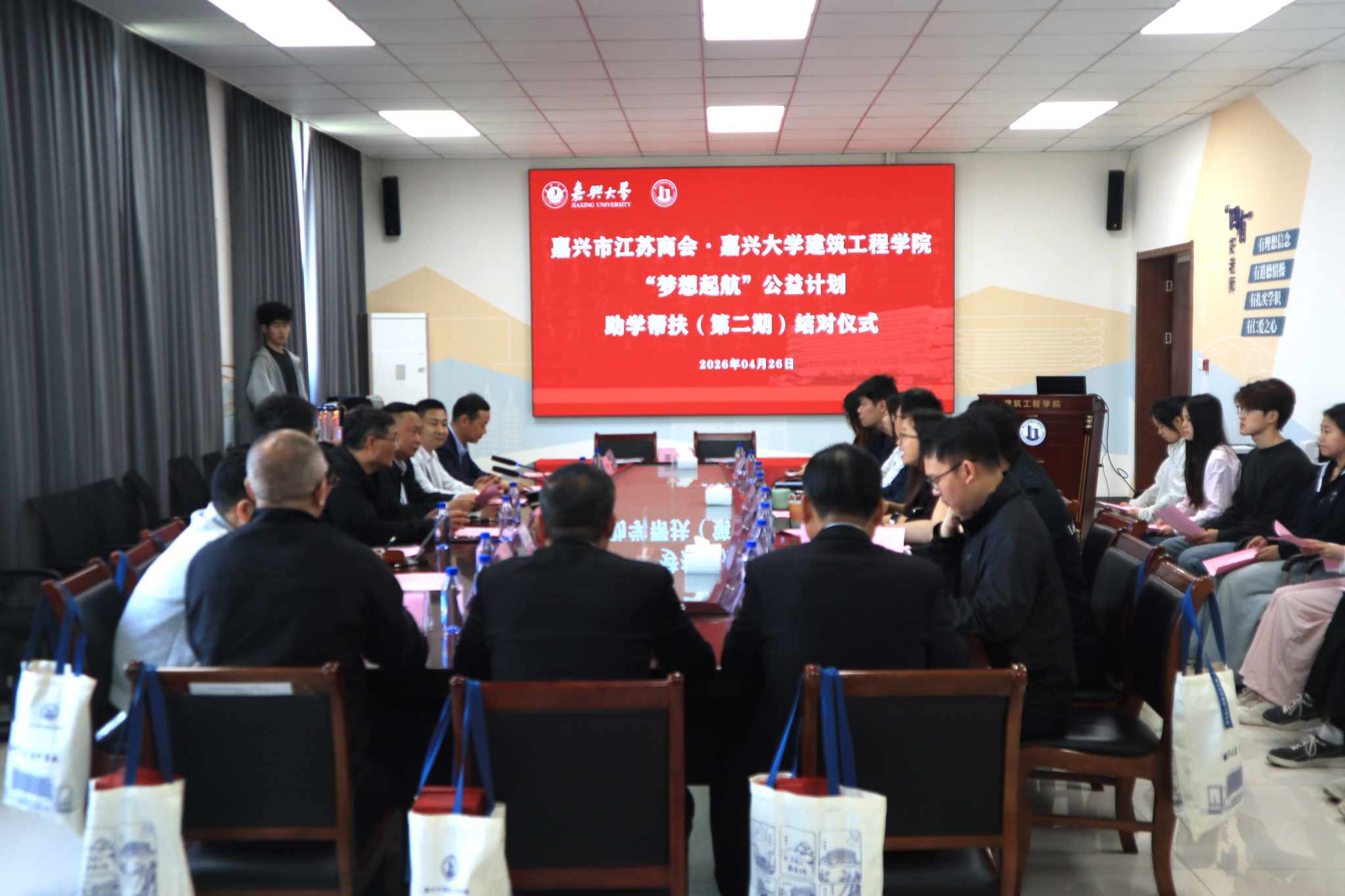 为深化校地合作,践行社会责任,助力青年学子成长成才,4月26日上午,嘉兴大学建筑工程学院携手嘉兴市江苏商会开展“梦想起航”公益计划第二期结对仪式。嘉兴市江苏商会领导和爱心企业家代表、学院相关负责人及10名受助学生共同参与活动,延续爱心接力,共筑青春梦想。
