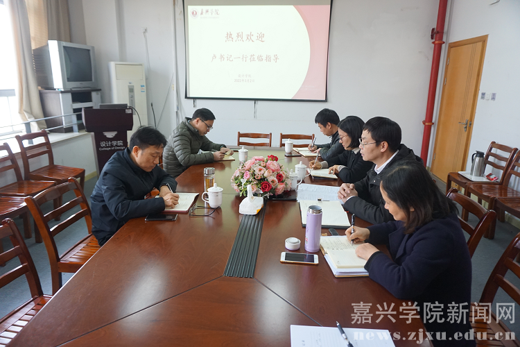 3月2日上午,校党委书记卢新波到设计学院调研指导工作。党委(校长)办公室主任王立玮随同调研,学院党政领导班子参加调研座谈会。