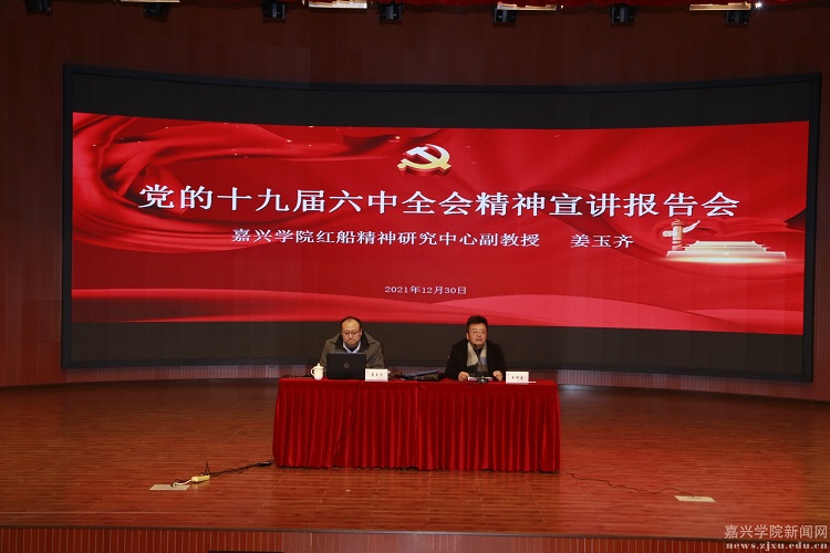 12月30日下午,平湖师范学院(应用技术学院)举行党的十九届六中全会精神宣讲报告会。校宣讲团成员,教育部人文社科重点研究基地嘉兴学院红船精神研究中心博士、副教授姜玉其作专题宣讲报告。平湖师范学院(应用技术学院)副院长王明建主持报告会。
