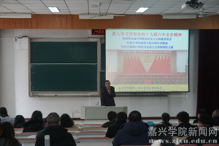 肖纯柏教授围绕《中共中央关于党的百年奋斗重大成就和历史经验的决议》,对十九届六中全会的议程进行了梳理,并从重大成就在非凡历程中取得、历史经验在把握规律中形成和新的赶考在不忘初心中前行三个方面展开讲述。他将中国共产党百年党史概括为“开天辟地”“改天换地”“翻天覆地”“经天纬地”四个阶段,带领全体教师重点回顾了党的百年奋斗重大成就。最后,他还解读了十九届六中全会提出的建党百年历史经验总结“十个坚持”内涵,指出“十个坚持”是党和人民共同创造的精神财富,我们必须加倍珍惜、长期坚持,并在新时代的实践中不断丰富和发展。