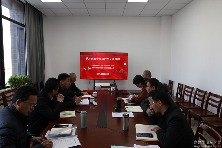 11月25日下午,平湖师范学院(应用技术学院)与马克思主义学院、体育与军训部三家单位党委理论学习中心组召开联学会,专题学习“十九届六中全会精神”。校党委原副书记、校红船精神研究中心主任、马克思主义学院院长吕延勤出席联学会,平湖师范学院(应用技术学院)党委书记朱素斌主持会议,三个部门党政班子成员参加联学。