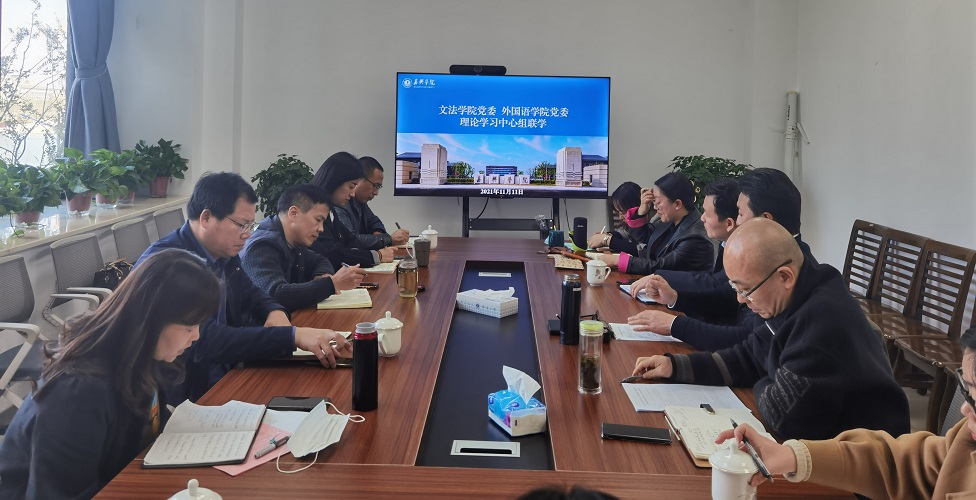 11月11日下午,文法学院党委和外国语学院党委在厚德楼268会议室召开理论学习中心组联学,专题学习“习近平总书记关于立足新发展阶段、贯彻新发展理念、构建新发展格局的重要论述”。校党委副书记吴云达出席联学,文法学院党委书记洪坚主持会议。两个单位中心组15名成员参加会议。