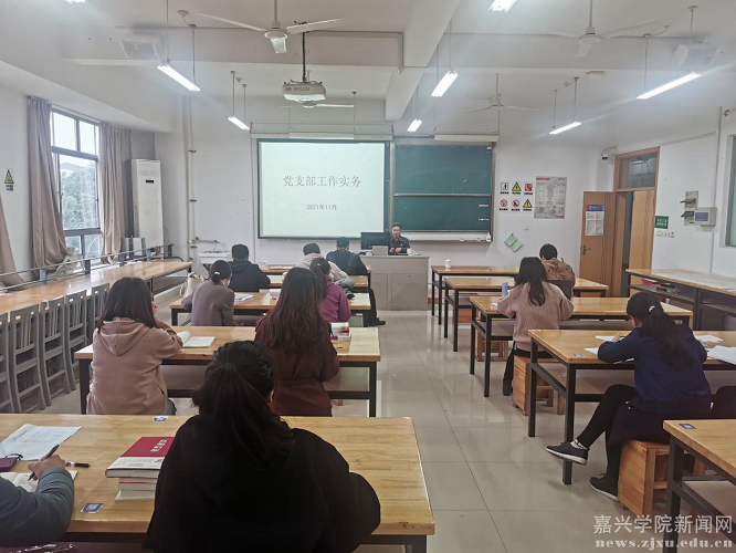 姚颖超结合《中国共产党支部工作条例(试行)》《中国共产党普通高等学校基层组织工作条例》等文件要求,从基层党组织设置、党的组织生活两方面进行详细讲解,重点强调要规范进行“三会一课”、主题党日、谈心谈话等活动,最后对党员发展的流程及期间会出现的问题提出了相应的建议对策。