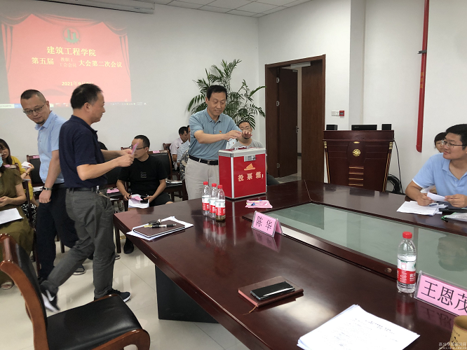 第二阶段会议由党委副书记杨智慧主持,会议通过了监票人、计票人建议名单和《建筑工程学院教职工、工会会员大会表决办法》。经无记名投票,会议通过了《建筑工程学院岗位设置与聘任实施办法(审议稿)》《建筑工程学院“十四五”发展规划(审议稿)》。