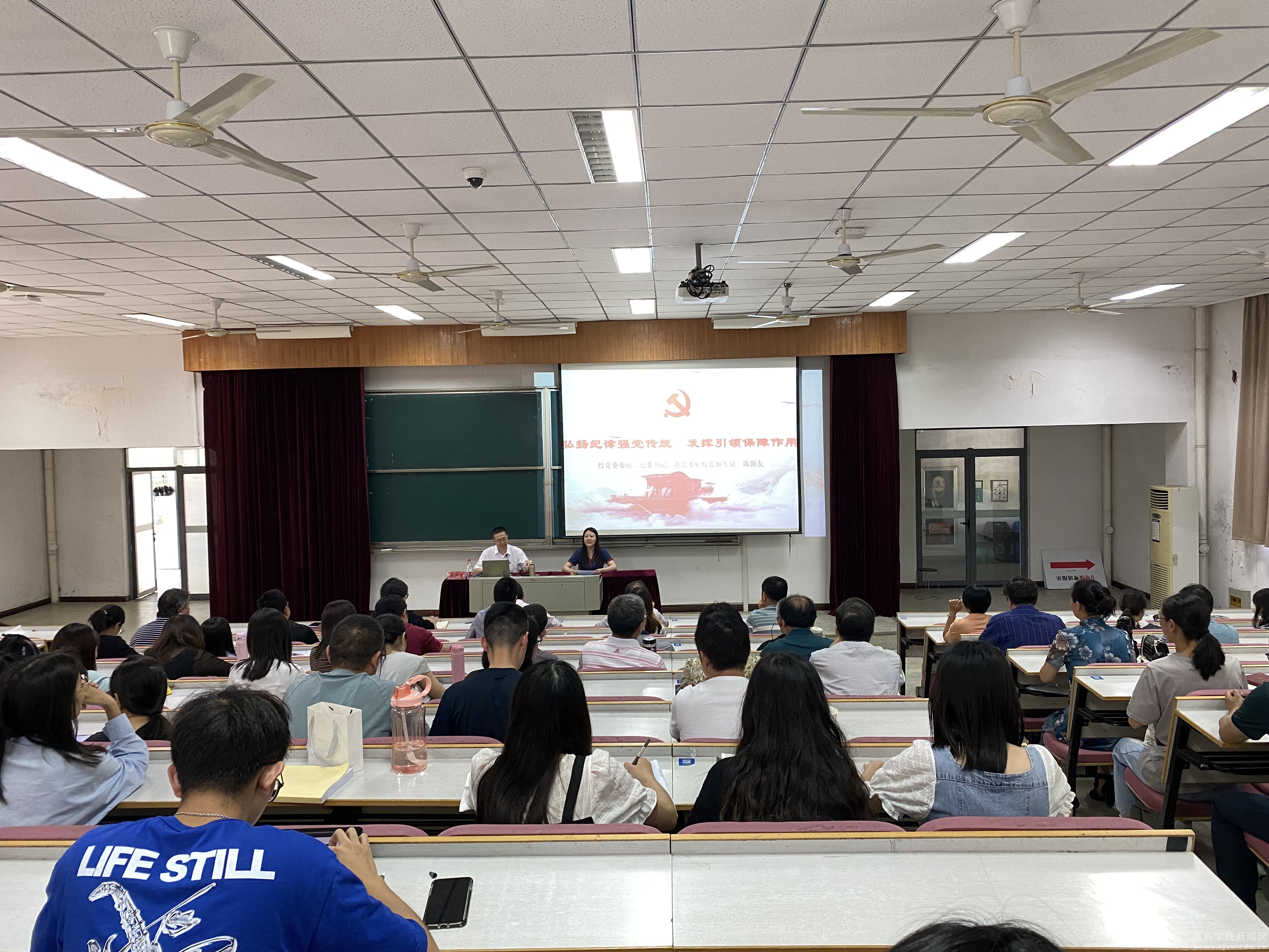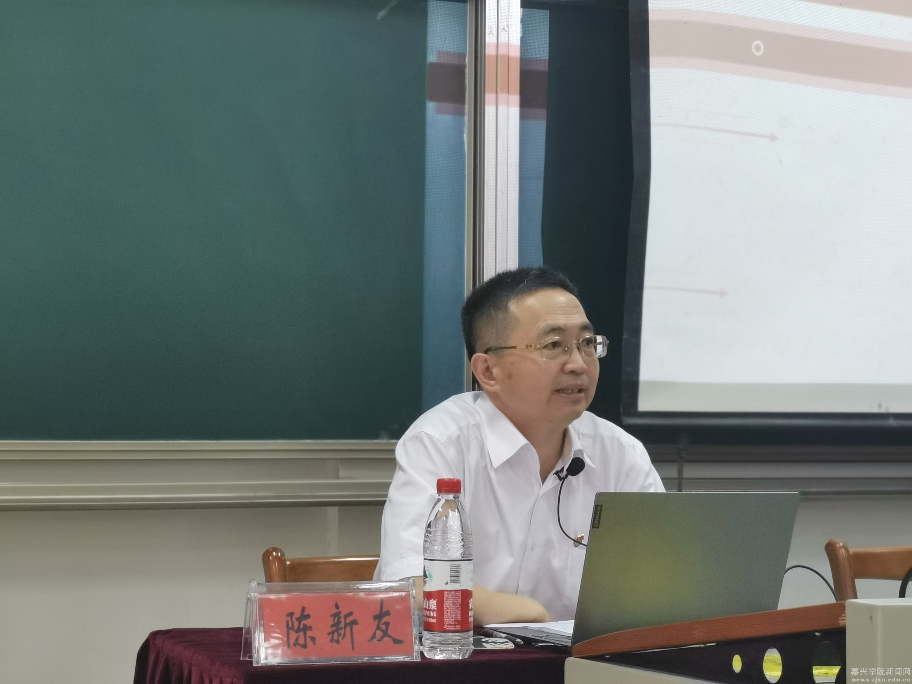 6月24日下午,数据科学学院在7号楼报告厅开展党史学习教育。校党委委员、纪委书记、省监委驻嘉兴学院监察专员陈新友应邀讲授题为《弘扬纪律强党传统 发挥引领保障作用》的专题党课。院党委书记战昕主持党课,党政班子成员、辅导员、师生党员80余人参加学习。