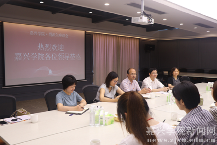 “爵派尔”董事长贾伟平对“爵派尔”的发展历程、设计、生产、经营等情况进行了详细介绍;设计学院院长韦浩介绍了设计学院专业建设、师资队伍、人才培养等方面基本情况;副院长裘玉英回顾了4年多来学院与“爵派尔”校企合作的开展情况并对进一步深化合作提出了设想。