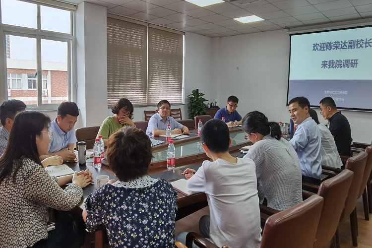 5月10日下午,副校长陈荣达到生化学院调研指导工作。生化学院党政领导班子成员、各部门主任参加调研会。