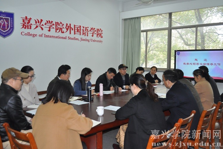 艾宁充分肯定了学院工作思路和良好发展态势,并对学院教学工作提出三点要求:一要在充分调研嘉兴本地人才需求基础上,做好新专业的申报和师资准备工作;二要将课程建设、实践基地建设和教学成果奖的申报相结合,未雨绸缪、多方联动,行成工作合力,助推学院顺利申报英语专业翻译硕士点;三要结合学院工作实际,对学校即将进行的考核评价体制提出建设性意见。