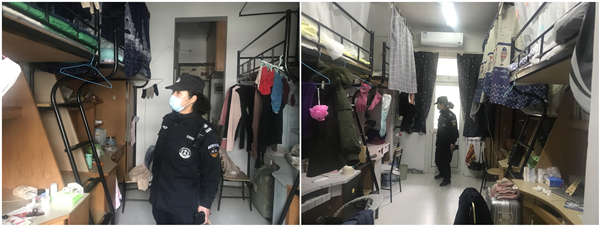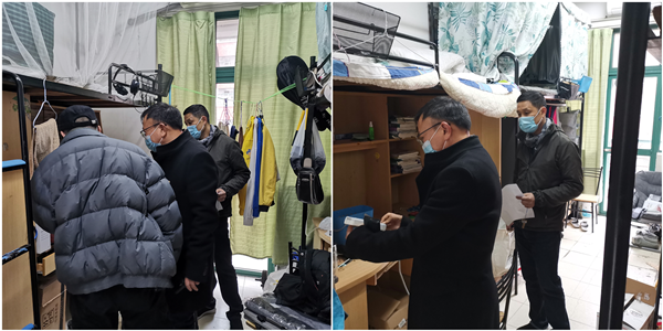 检查人员共分5组,分别对寒假留校学生寝室进行了安全检查。检查内容包括是否使用违章电器、是否存在私拉乱接电线现象、大门是否上锁、寝室内是否饲养小动物、有无使用明火、有无存放管制刀具等方面。对存在安全隐患的寝室,检查人员提醒学生要及时整改,并将违纪情况进行记录,以起到警示教育作用。检查过程中,检查人员向留校学生了解寒假期间的学习生活安排及寝室电器的使用情况,提醒大家要注意寝室用电安全;同时叮嘱即将回家的学生返程途中做好个人防护,做到寒假期间不聚集、少走动,减少不必要的外出。