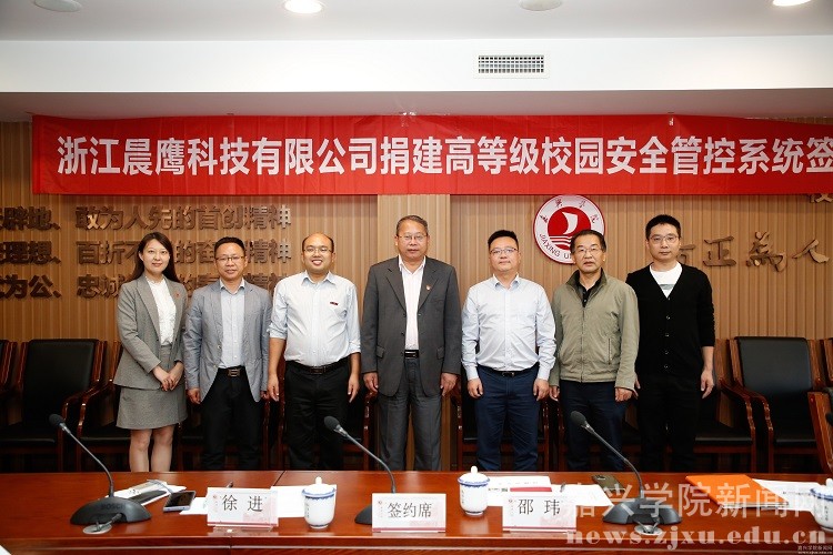 10月17日,恰逢嘉院106周年校庆,浙江晨鹰科技有限公司向我校捐建高等级安全管控系统签约仪式在越秀校区举行。嘉兴学院教育发展基金会副理事长吕延勤、秘书长(校友办公室副主任)徐进,保卫处副处长王晓兵,网络管理中心杨建凯,机电工程学院党委书记丁玉泉出席仪式。仪式由机电工程学院党委副书记战昕主持。