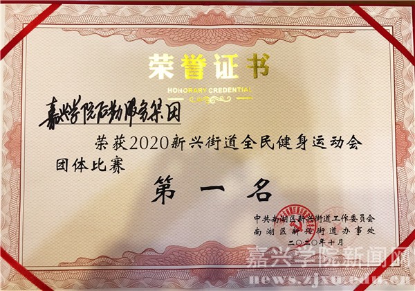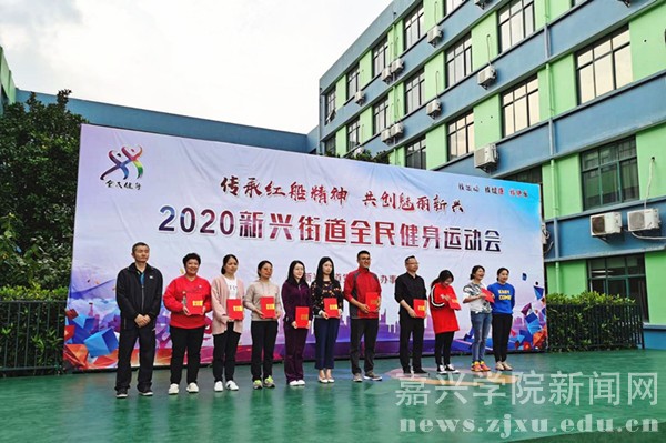 10月17日下午,嘉兴市南湖区新兴街道2020全民健身运动会在吉水小学操场举行。我校后勤服务集团16名运动员代表参加比赛,并以“运转乾坤球”第二名、“龙腾虎跃跳长绳”第三名的好成绩,喜获2020新兴街道全民健身运动会团体比赛第一名。