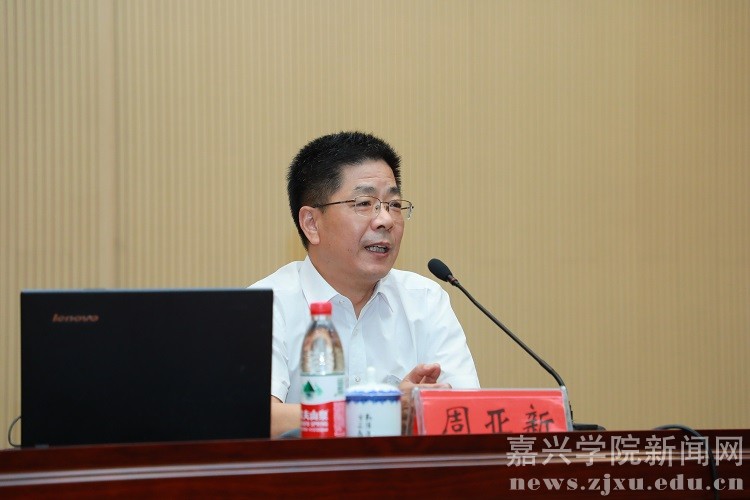 副校长周亚新为新教师作校情校史专题讲座,从“嘉兴学院的历史与未来”“咬定青山”“前程似锦”三个方面,为新教师梳理回顾了学校百余年办学历史,介绍了学校发展现状,并分享了学校未来发展蓝图。他指出,嘉兴学院当前正处于特定的历史时期,在各级党委政府的支持下,学校办学条件不断优化,办学能力不断提升。全体新教师作为学校未来事业发展的后背力量,更要咬定青山不放松,努力提升学校办学能力与水平。他希望,全体新教师内化“求是、求真、求正”的校风,践行“方正为人、勤慎治学”的校训,牢记“立德树人”根本任务,弘扬“勤善和美、勇猛精进”的新时代嘉兴人文精神,求真务实,担当作为,为学校事业高质量高水平发展作出新的更大的贡献。