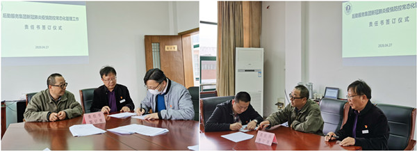 4月27日晚,后勤服务集团举行新冠肺炎疫情防控常态化管理工作责任书签订仪式。集团党政领导班子成员、各二级部门负责人参加会议。会议由集团党委书记徐云庆主持。