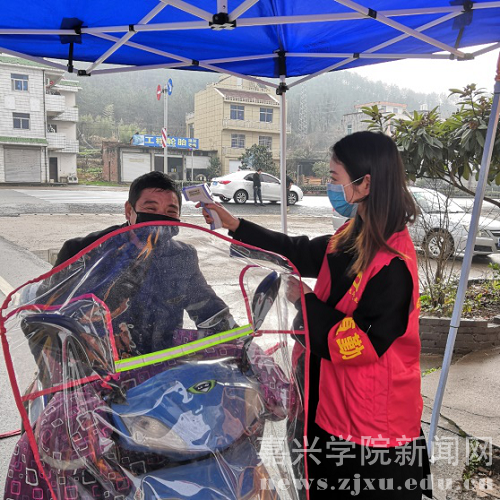 作为一名学生党员,英语161班金航婷曾参加过南湖革命纪念馆双语志愿讲解员、关爱自闭症儿童志愿服务等多个志愿服务活动。当看到新闻中每天新增确诊和疑似人数不断增加,她毫不犹豫加入志愿服务,穿上红马甲,在路口劝导村民减少外出,正确佩戴口罩,并为村民测量体温和记录。在一点一滴的检查和服务中,她感悟到作为一名学生党员,此刻她也在践行着一名学生党员应有的使命。