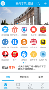 学校聚焦问题、直面矛盾,坚持把“改”字贯穿主题教育始终,针对“最多跑一次”改革难点、热点问题,充分运用互联网+服务和大数据,打通服务与数据堵塞点,努力实现让数据多跑路、师生少跑路。学校打造了集思想教育、自主学习、管理服务、文化娱乐为一体的“嘉易班”网络平台,推出了“智能小嘉”“学生服务大厅”“家园空间”三大功能模块,开发了3个校本化应用程序,为学生提供查询、服务功能,实现教学、管理、服务协同育人。截止目前,已建有49个“嘉易班”机构群、1004个公共群,注册用户19527人,校方认证18797人,认证率达96%。