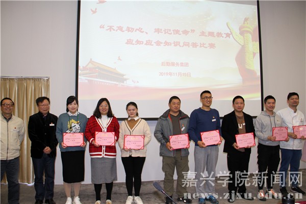 11月15日上午,后勤服务集团在越秀校区第六会议室开展“不忘初心、牢记使命”主题教育应知应会知识问答比赛。集团党政领导班子全体成员出席,集团党委书记徐云庆致辞。来自集团各党支部、团支部的15名选手参加比赛,70余名党员和团员代表观看比赛。