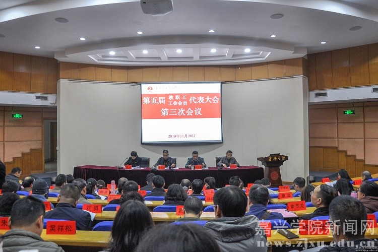 11月28日下午,南湖学院第五届教职工暨工会会员代表大会第三次会议在行政楼一楼报告厅举行。南湖学院院长袁志明出席并作院长工作报告。党委书记胡文蔚,副院长仇恒喜、翟玉文,纪委书记杨燕群,党委副书记徐蓉出席。副院长、分工会主席谢宏主持大会。